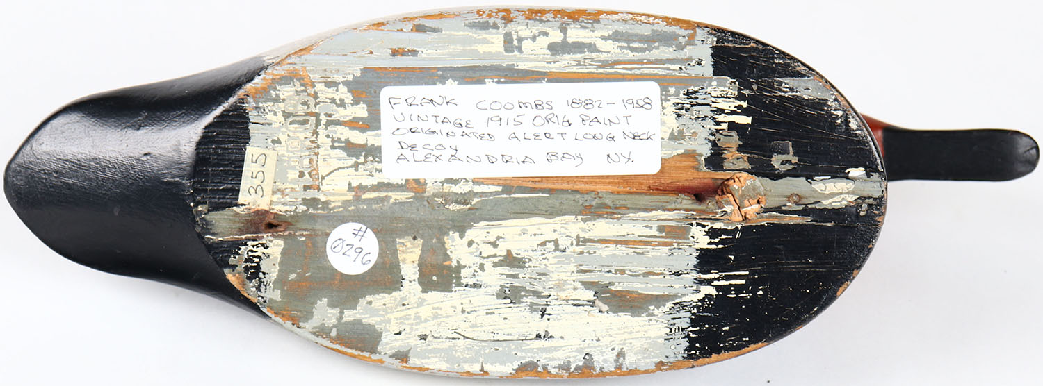 Canvasback Drake by Frank Coombs, Alexandria Bay, NY., glass eyes, structurally excellent, solid wood, original paint with comb painting. Grade: Excellent - Value: 150 to 300