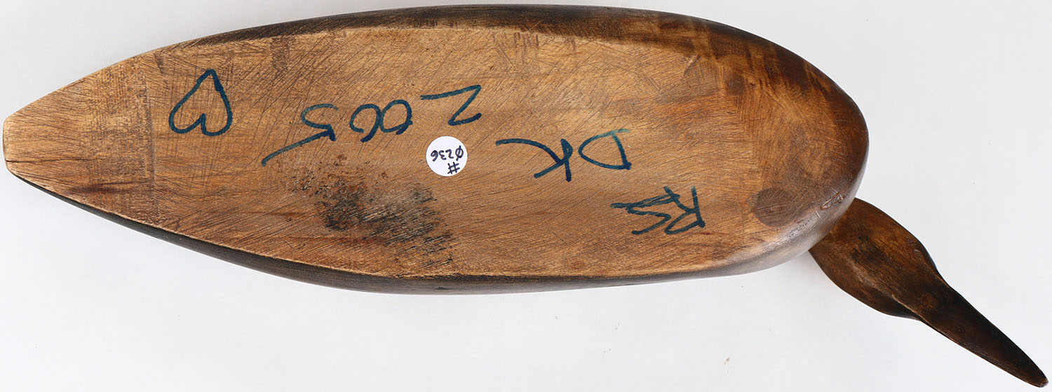 Unknown species by RS DK, no eyes, structurally excellent, solid wood, signed on bottom, original paint. Grade: MINT - Value: 10 to 30