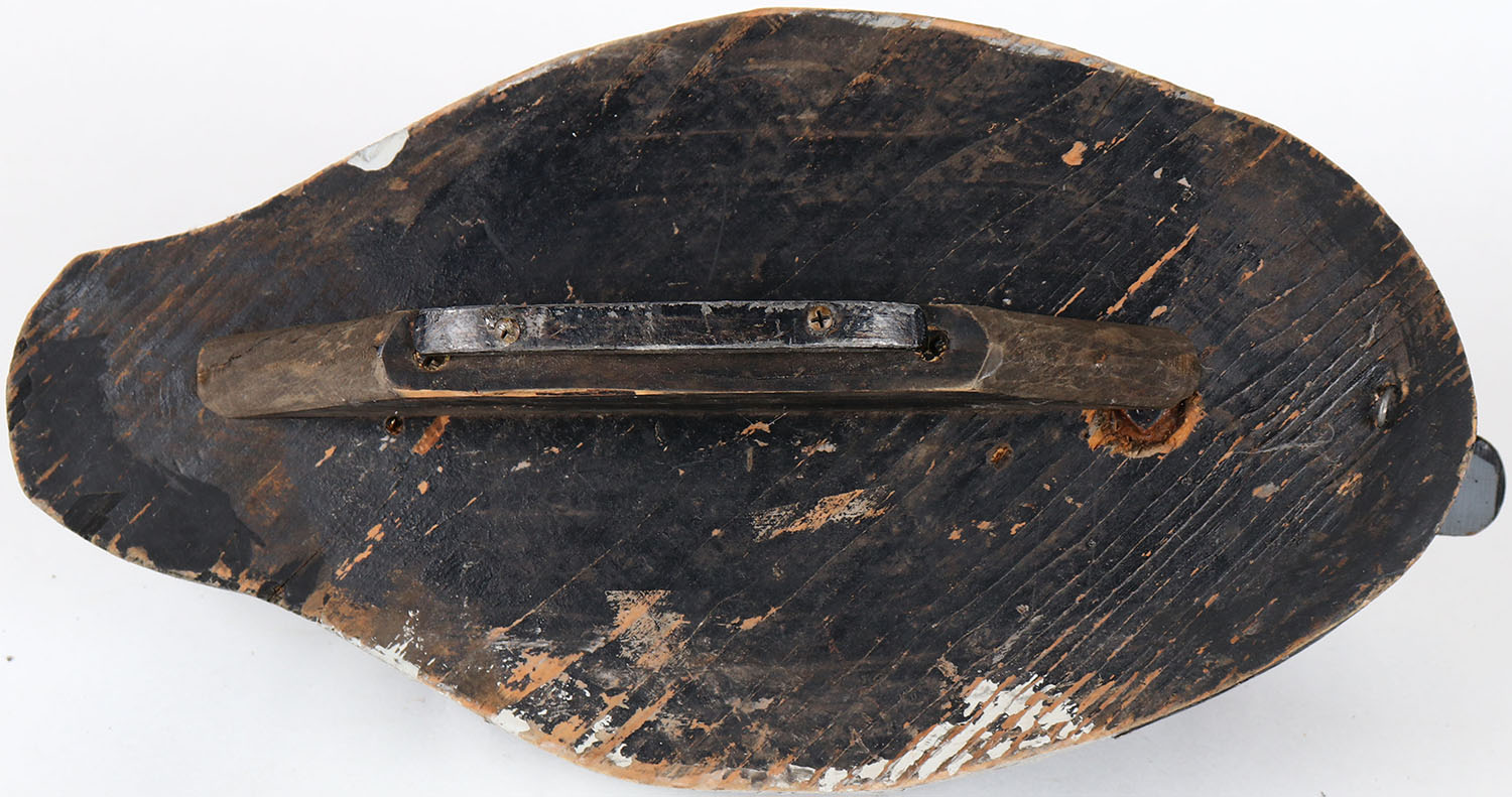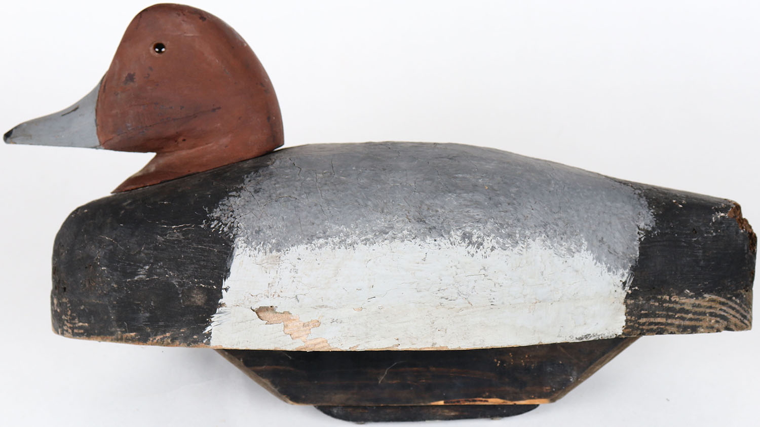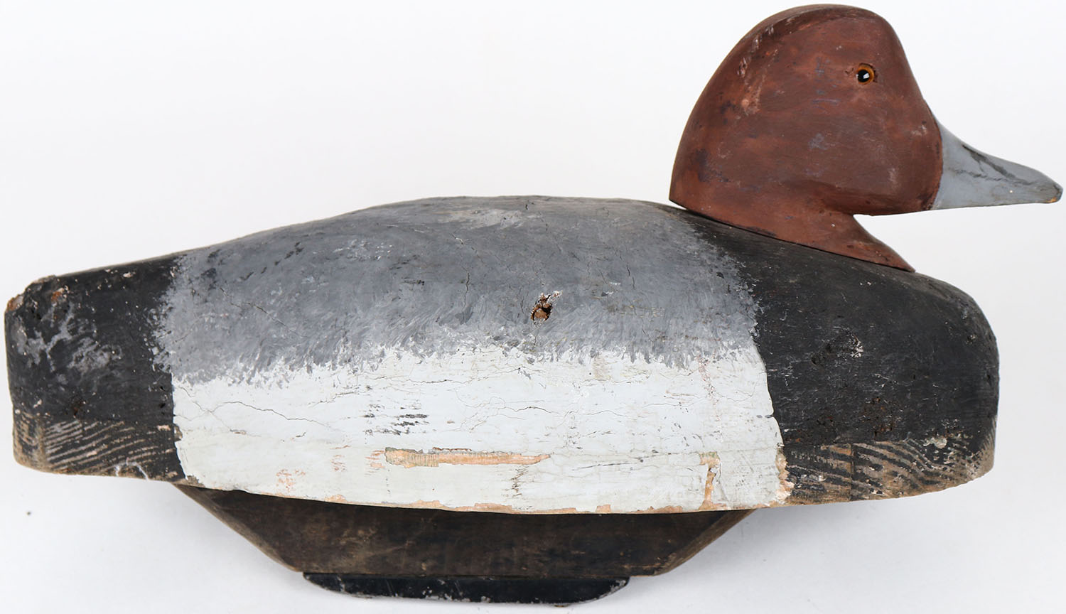 Redhead Drake by unknown maker, glass eyes, has age cracks on back, head is loose, solid wood, original paint. Grade: Very Good ++ - Value: 10 to 30