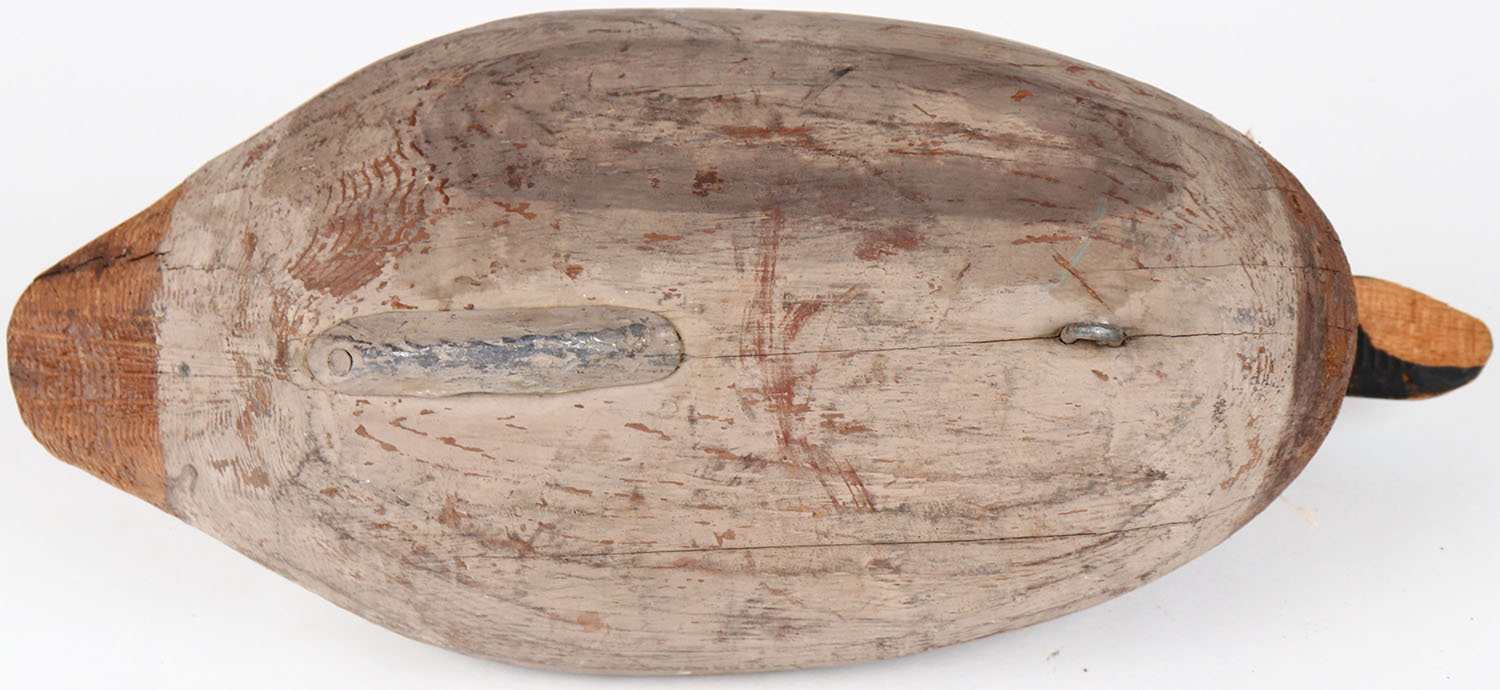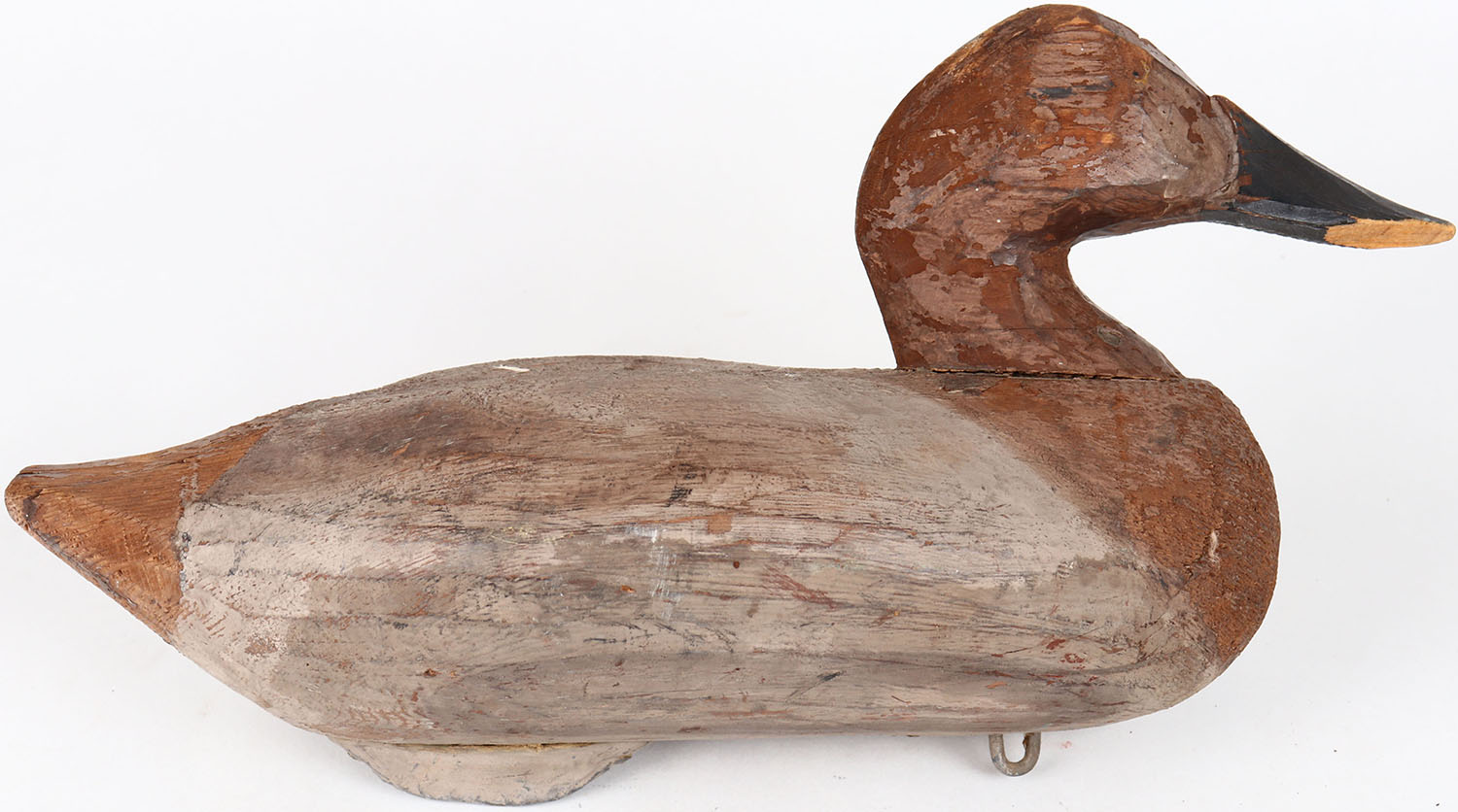 Canvasback Drake by unknown maker, Havre de Grace, MD, no eyes, has age cracks on back and bottom, solid wood, original paint. Grade: Excellent - Value: 60 to 150