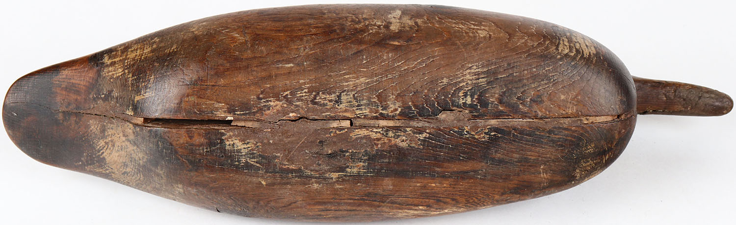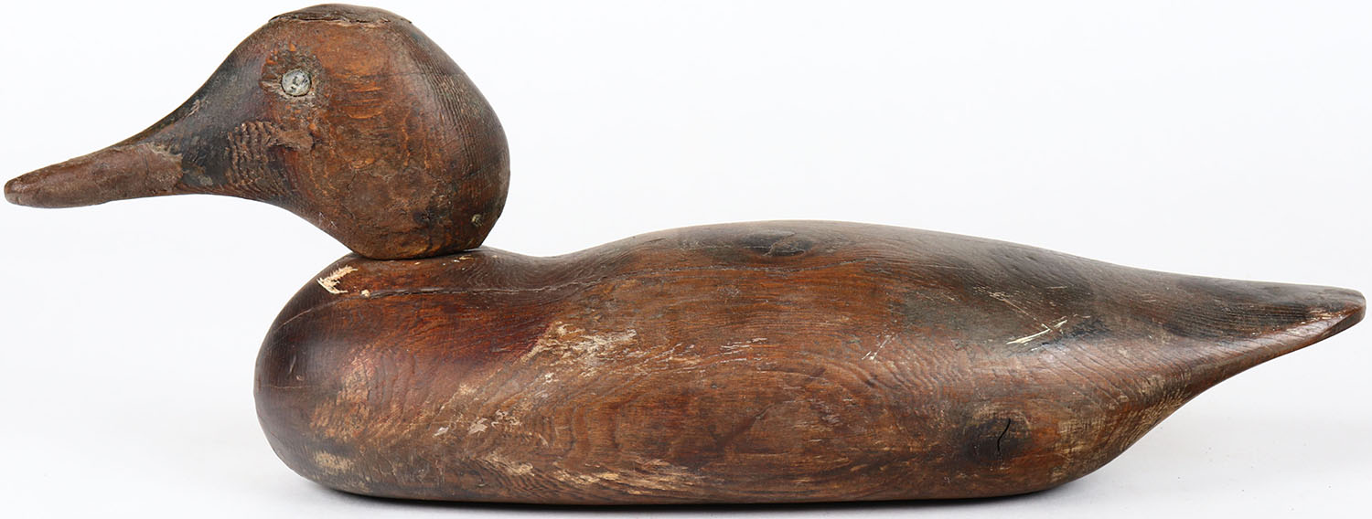 Mallard by Mason Decoy Company, Detroit, MI, tack eyes, has age cracks on back and bottom, head is loose, solid wood, signed on bottom, original paint. Grade: MINT - Value: 30 to 60
