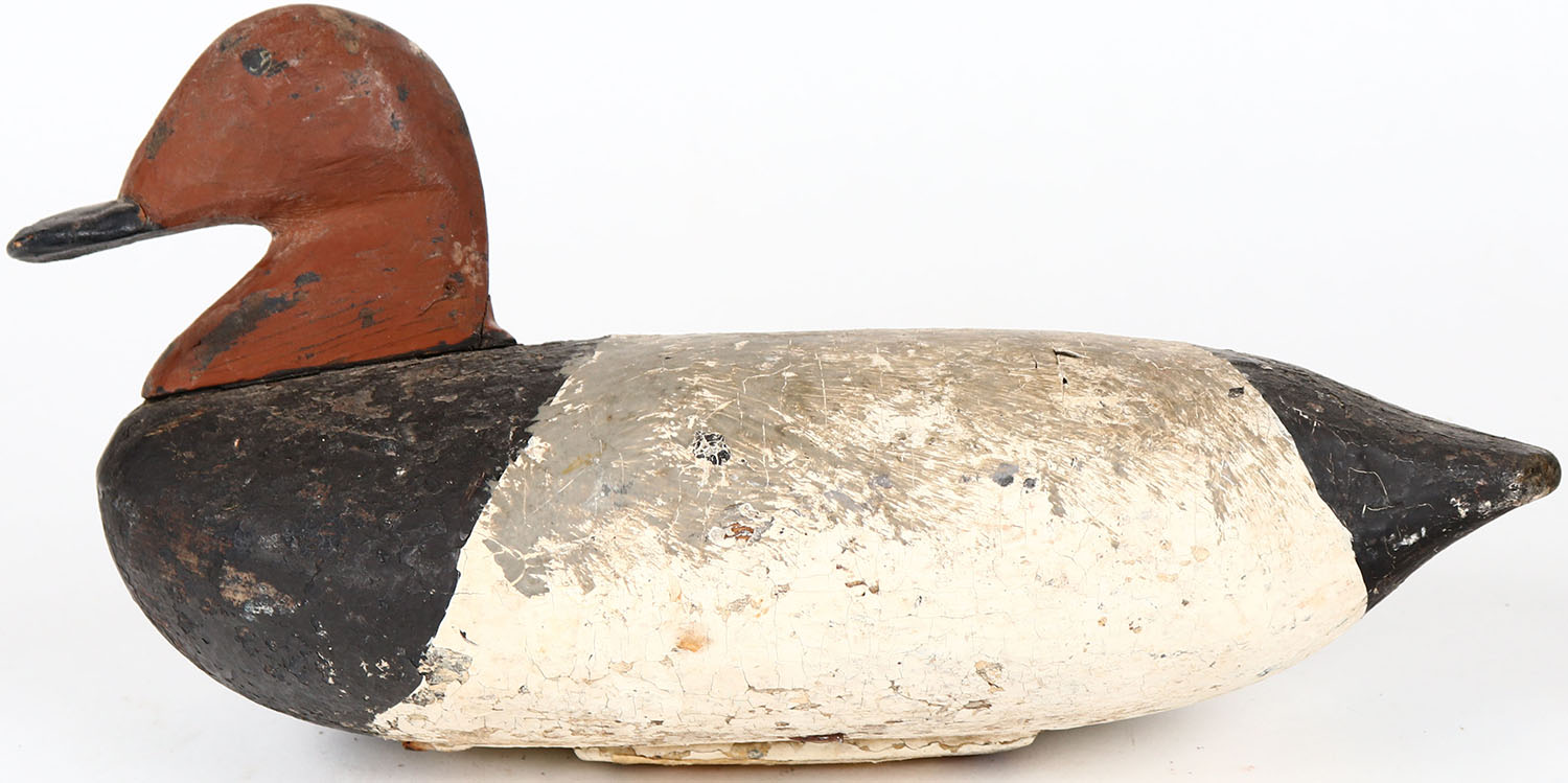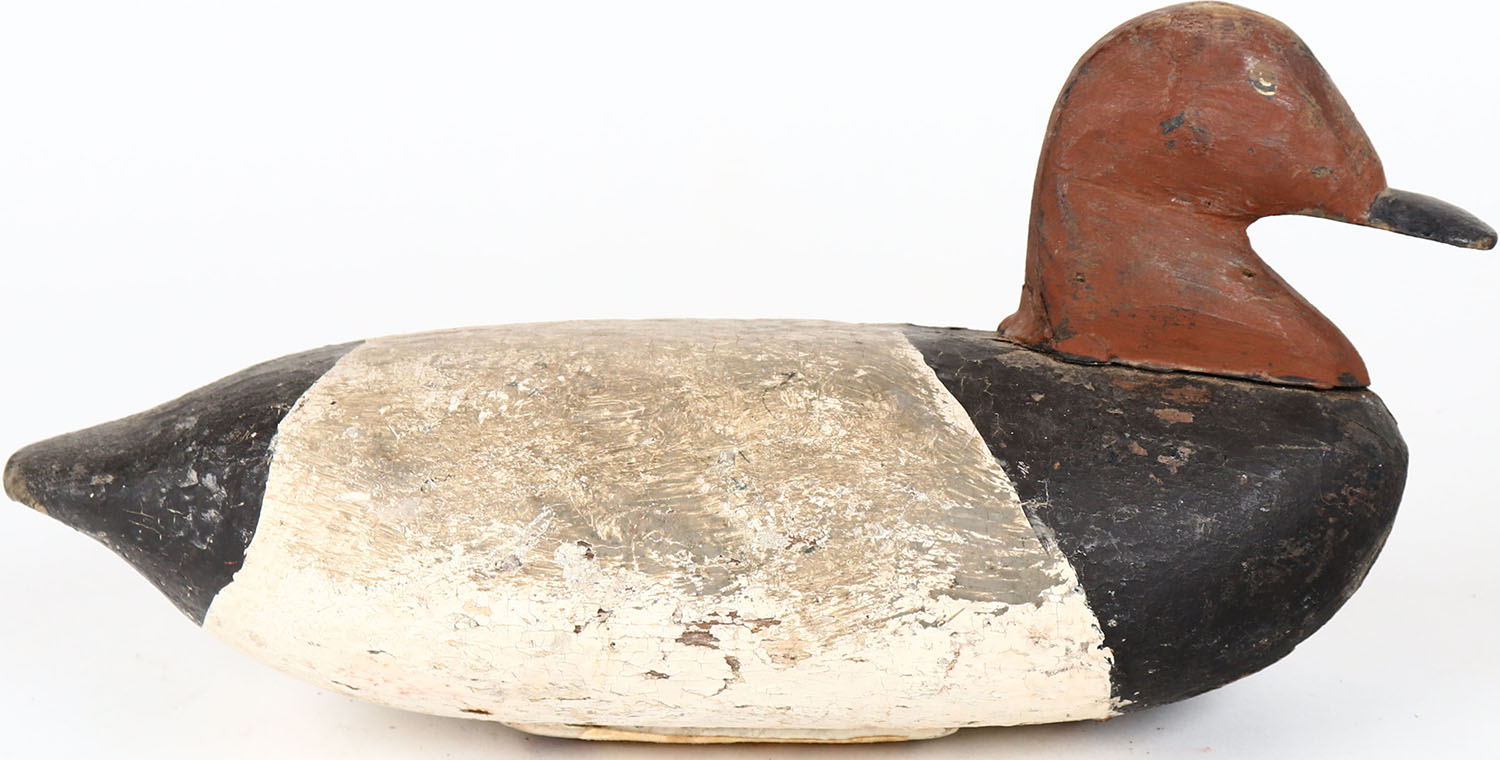 Canvasback Drake by unknown maker, painted eyes, structurally excellent, solid wood, repainted. Grade: Very Good ++ - Value: 30 to 60