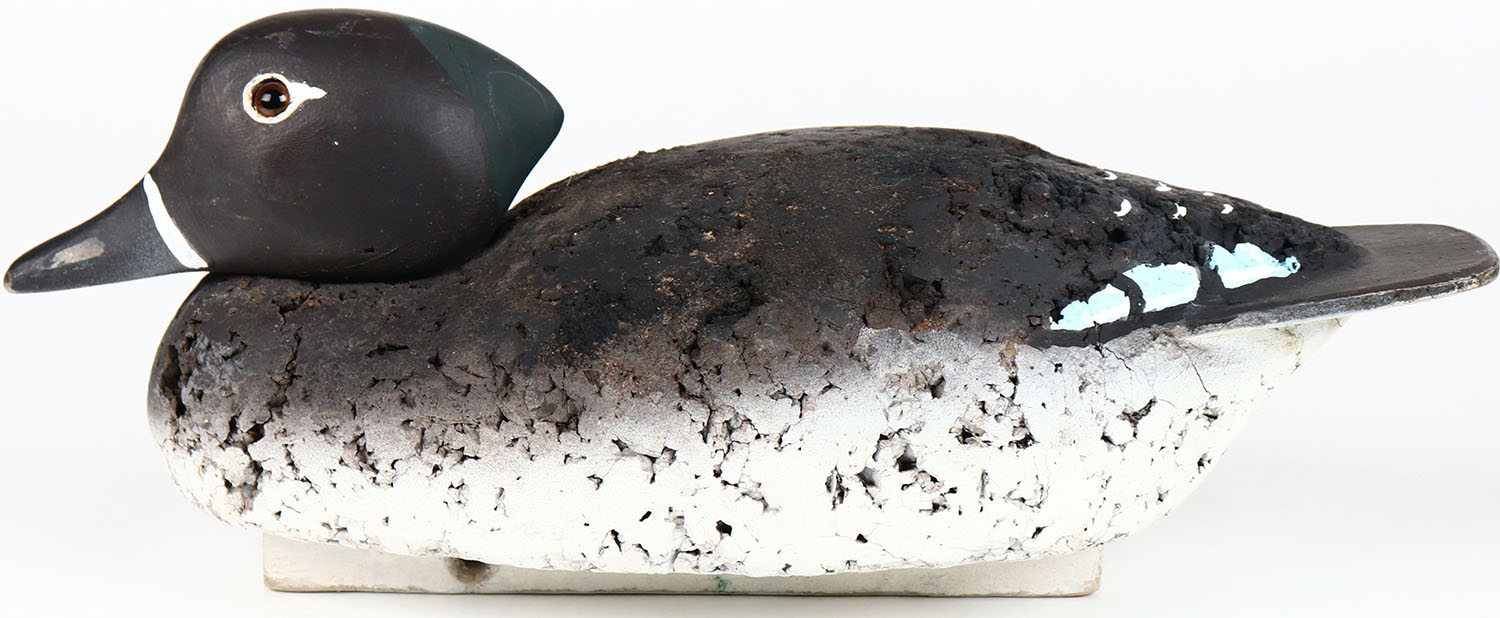 Wood Duck Hen by unknown maker, NJ, glass eyes, structurally excellent, solid cork body, original paint. Grade: MINT - Value: 30 to 60