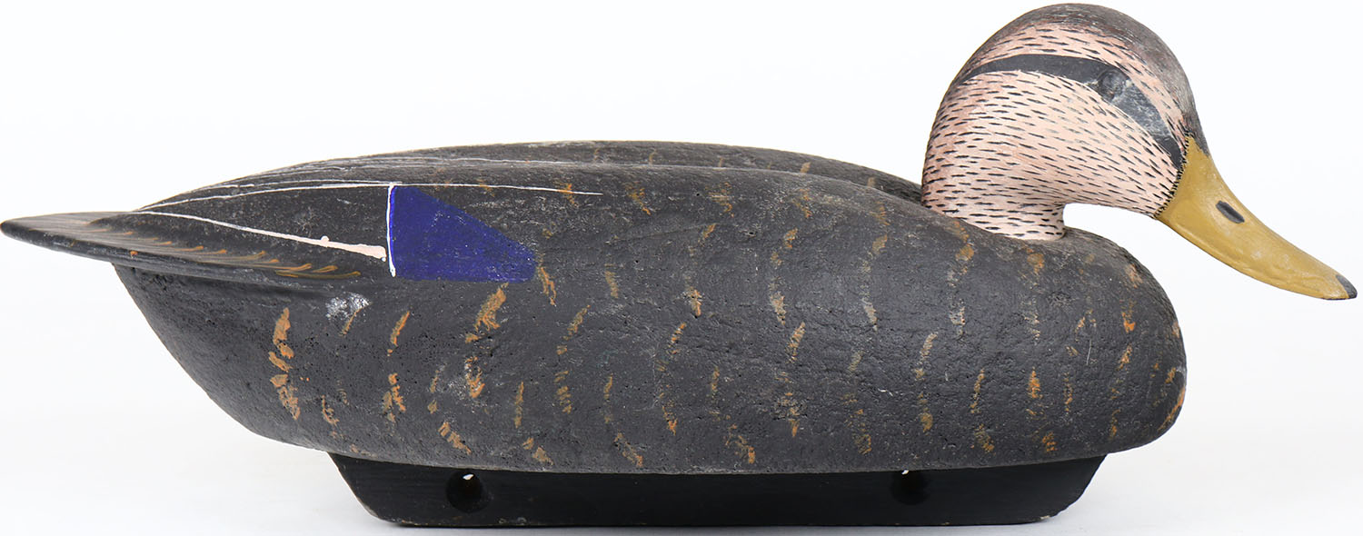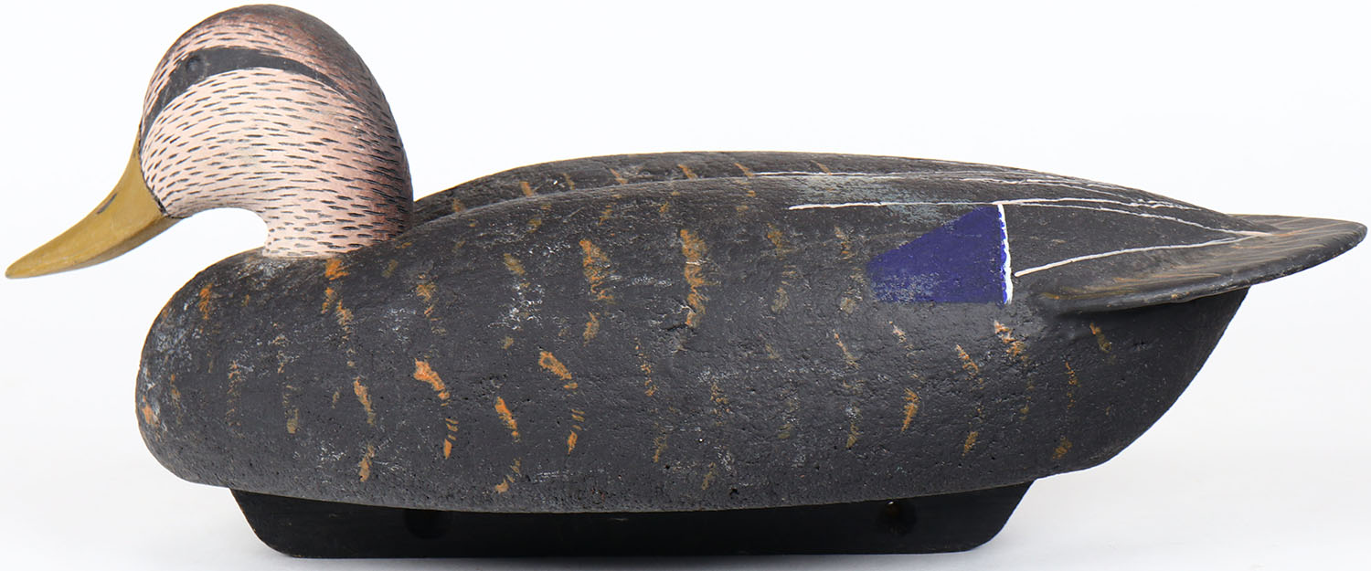 Black Duck by unknown maker, painted eyes, structurally excellent, solid cork body, original paint. Grade: Excellent ++ - Value: 40 to 80