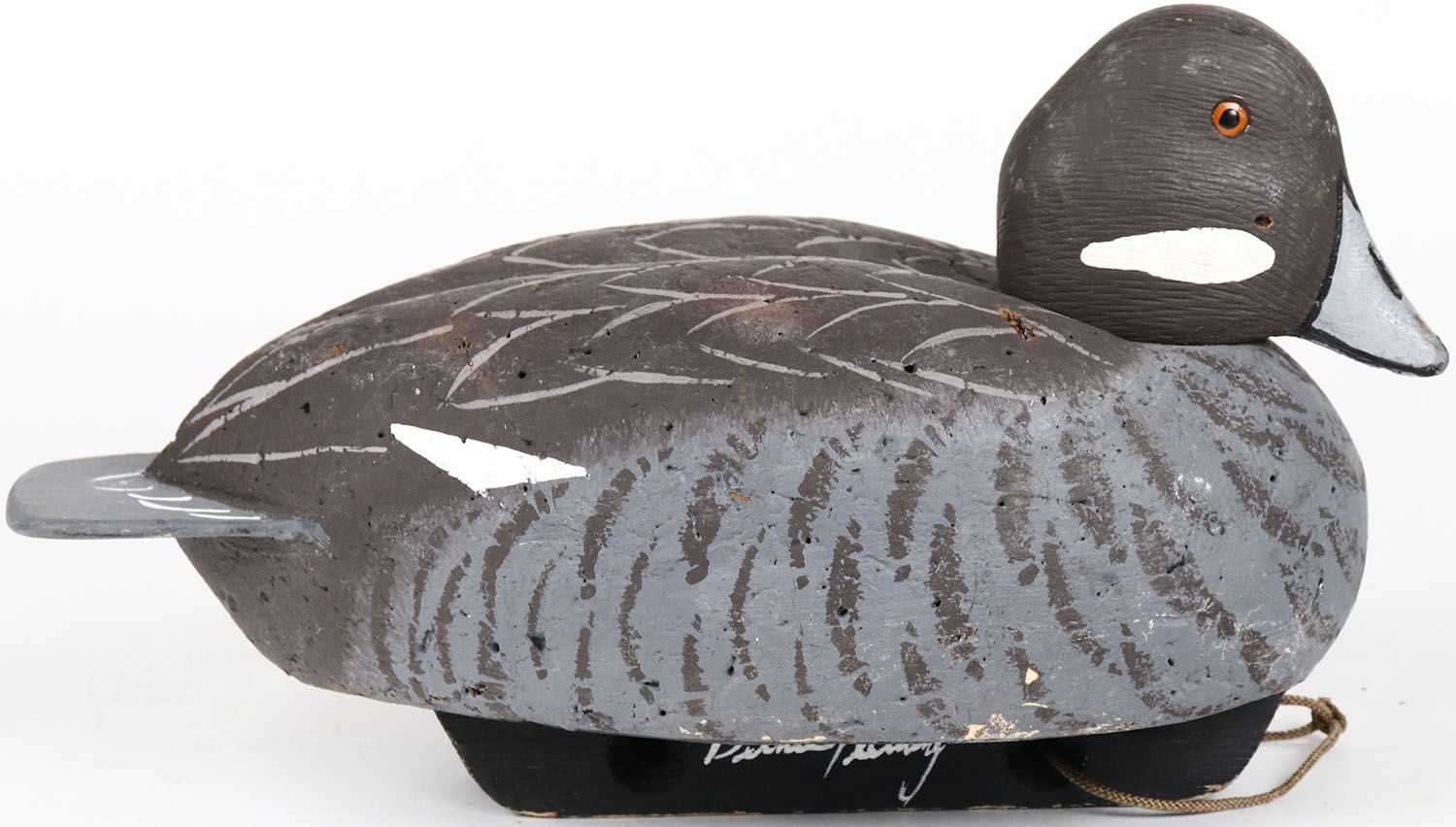 Bluebill Hen by unknown maker, NJ, painted eyes, structurally excellent, solid cork body, original paint. Grade: Excellent ++ - Value: 40 to 80