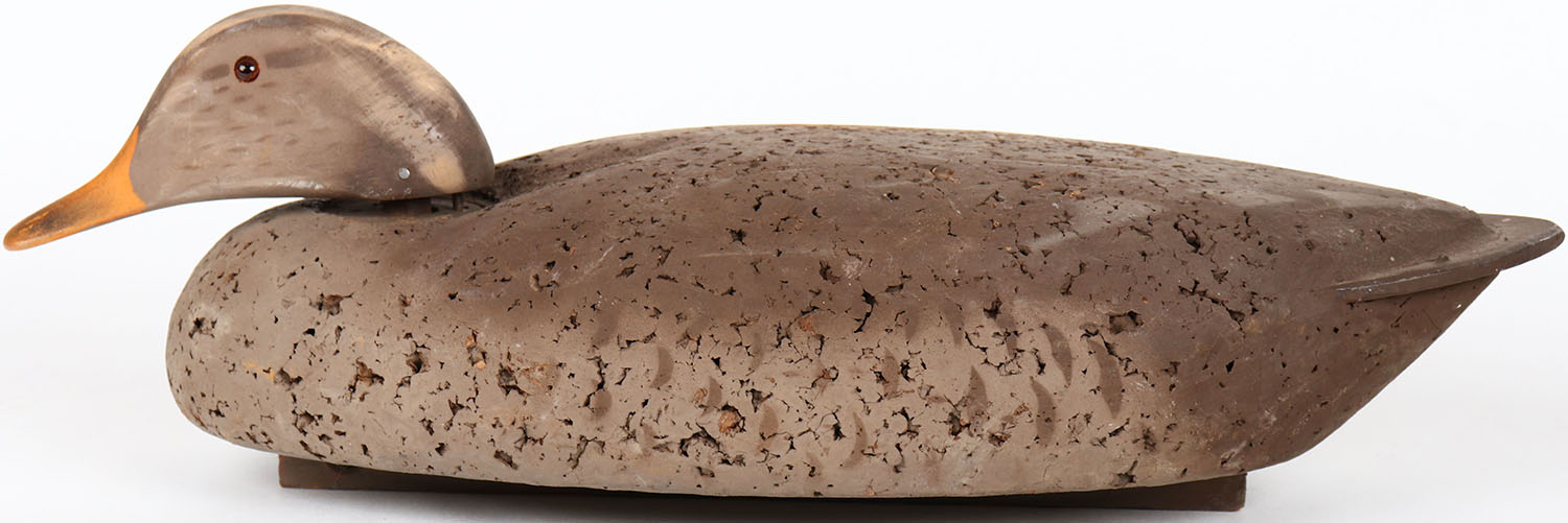 Mallard Hen by unknown maker, glass eyes, head comes off, solid cork body, original paint. Grade: Very Good ++ - Value: 40 to 80
