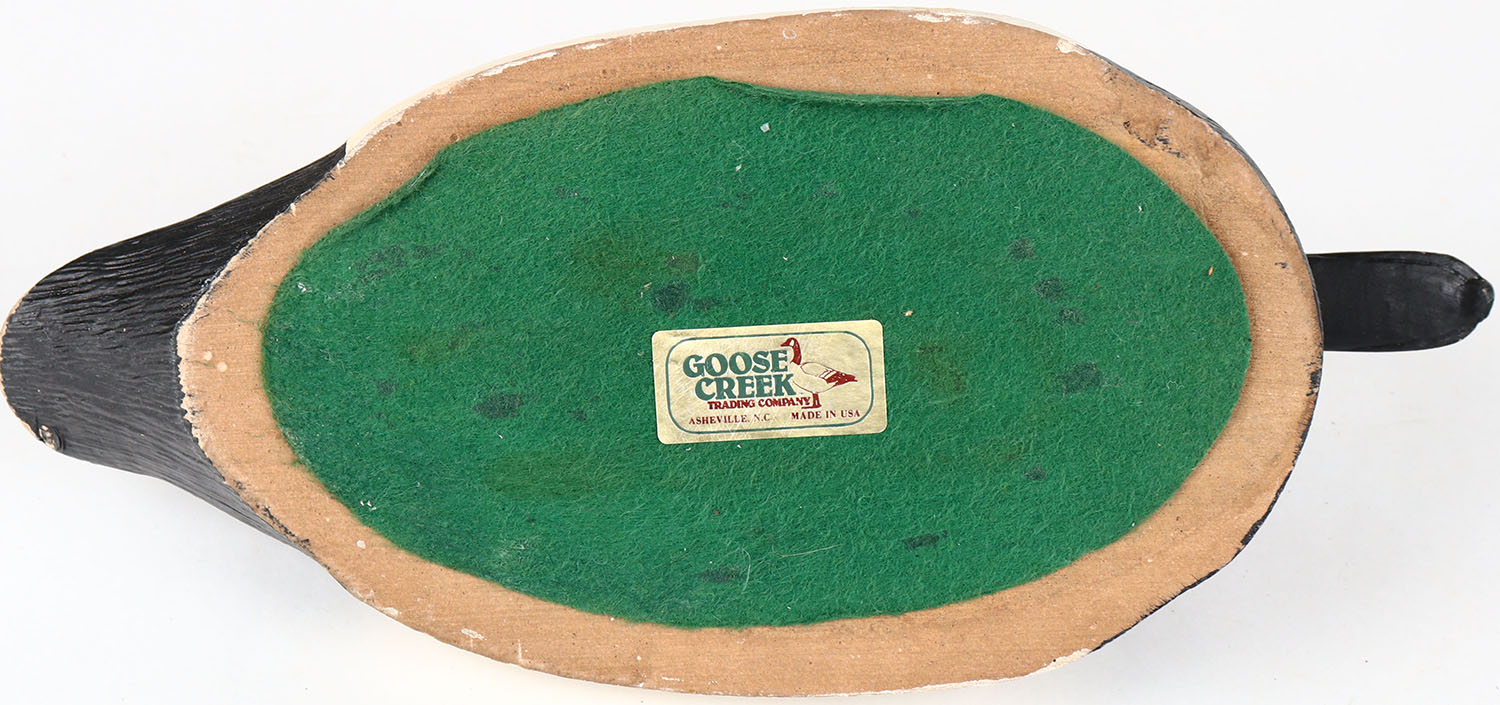 Canvasback Drake by Goose Creek Trademark Company, Asheville, N.C, glass eyes, structurally excellent, solid wood, original paint. Grade: Excellent ++ - Value: 20 to 40