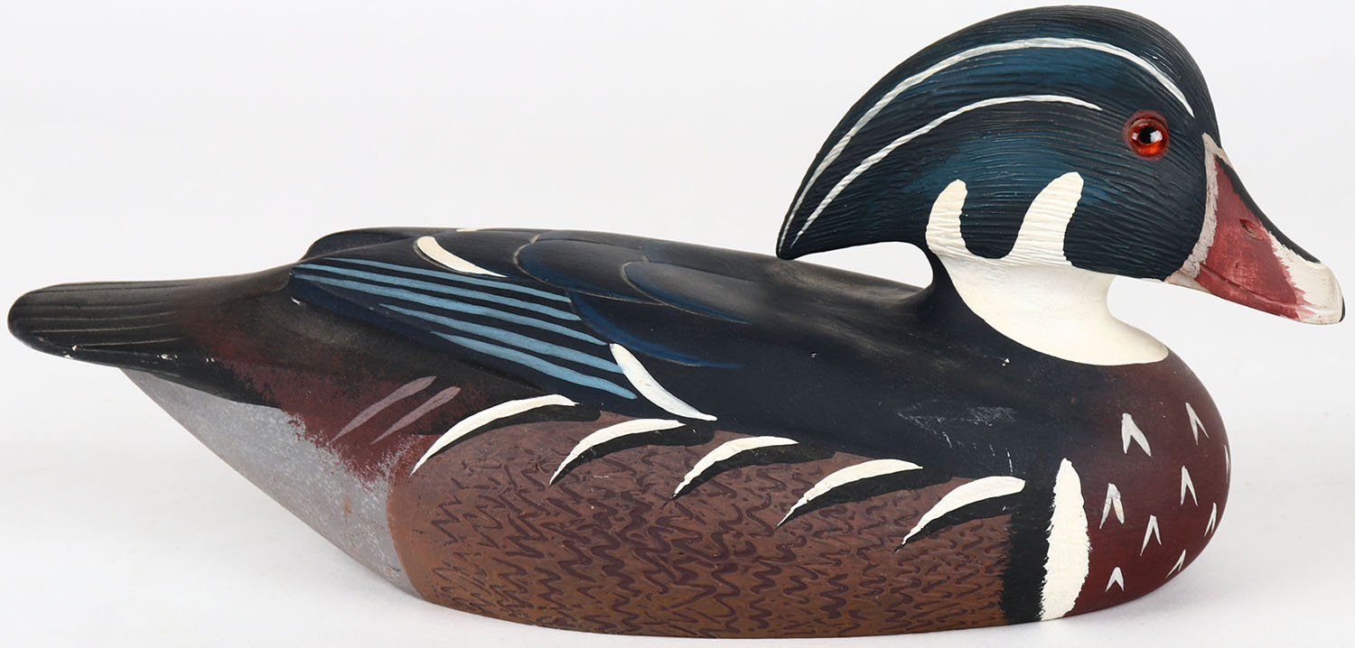 Wood Duck Drake by Bob Berry, North American Duck Collection, glass eyes, structurally excellent, solid wood, original paint. Grade: MINT - Value: 40 to 80