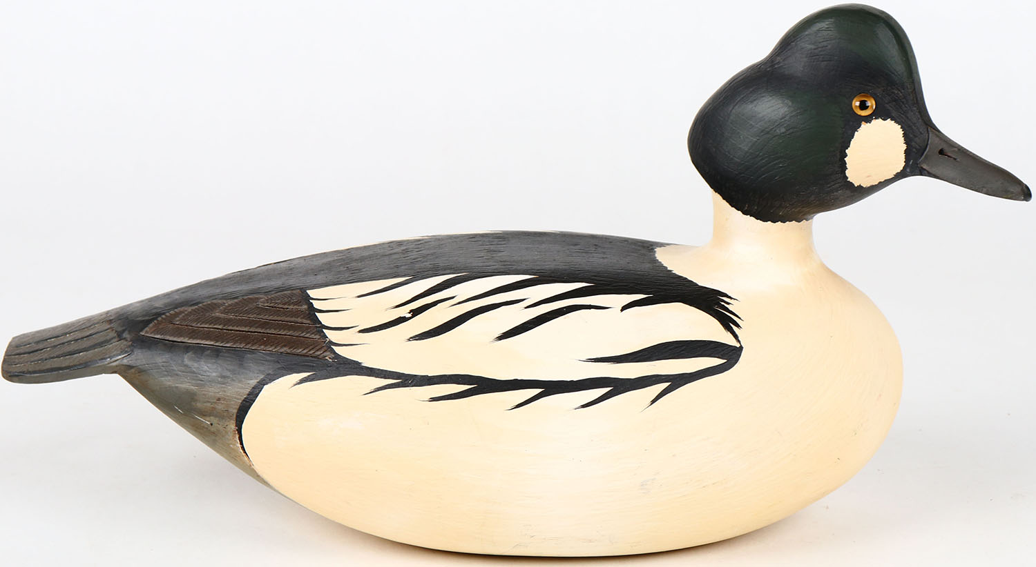 Goldeneye Drake by Lou Reineri, glass eyes, structurally excellent, solid wood, original paint. Grade: MINT - Value: 60 to 150