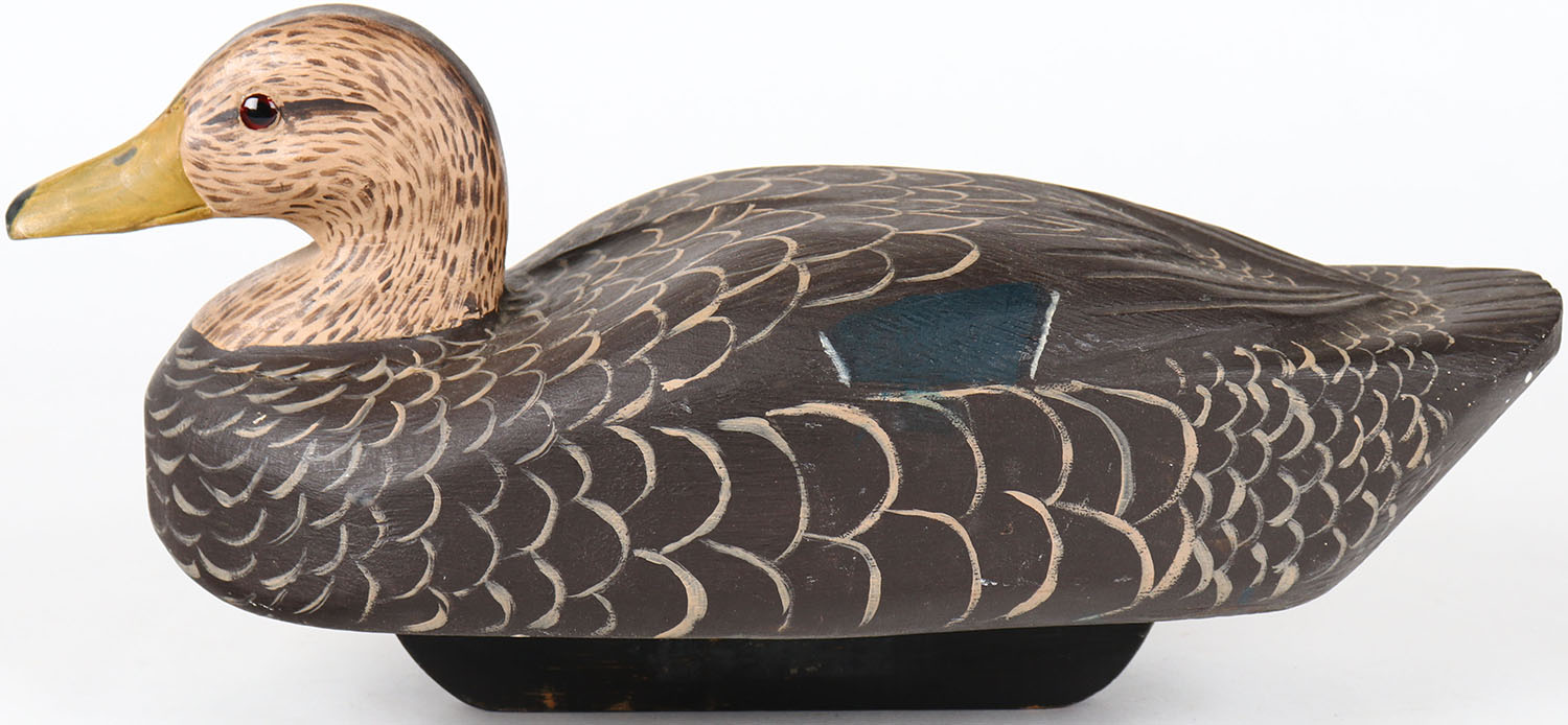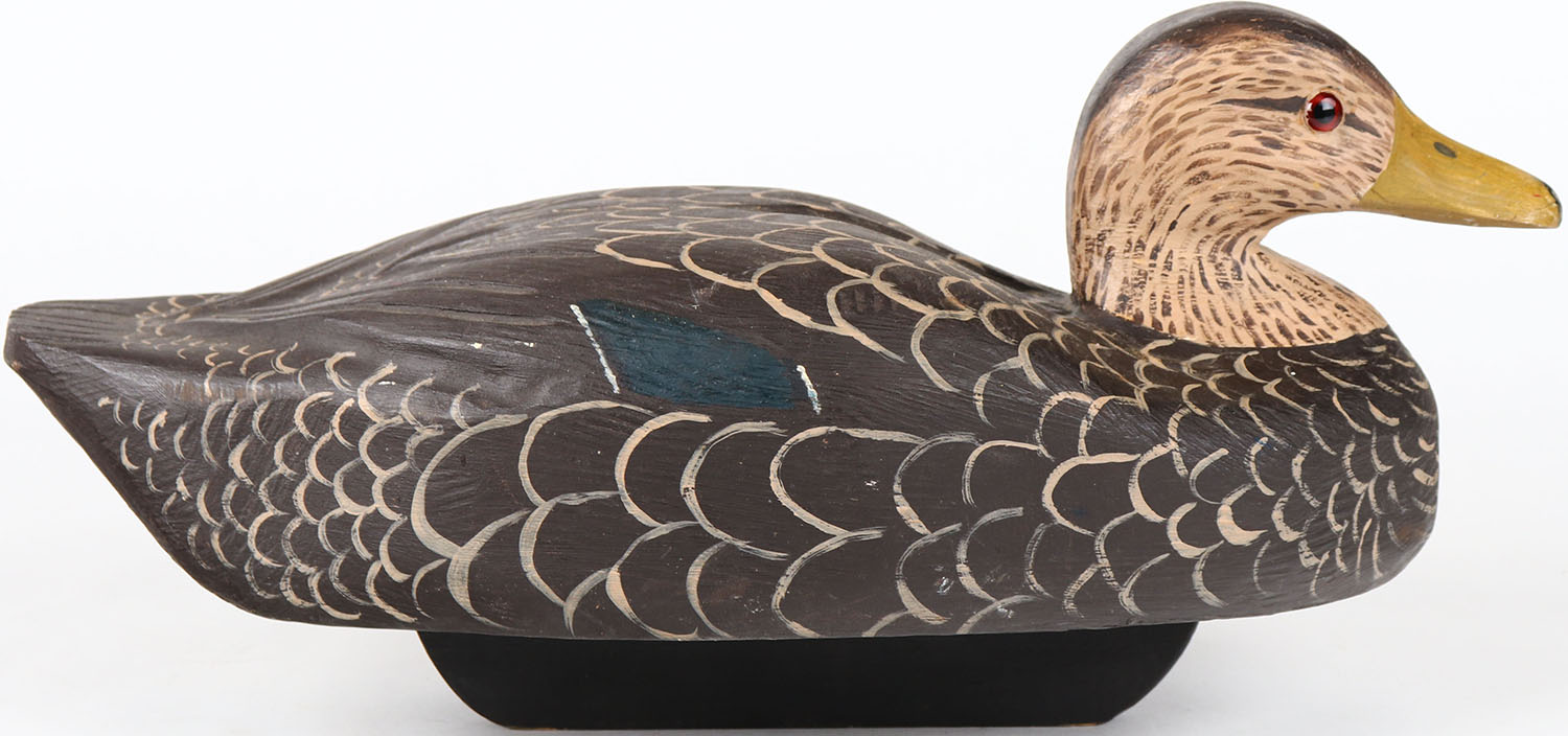 Black Duck by unknown maker, glass eyes, structurally excellent, solid wood, original paint. Grade: MINT - Value: 30 to 60