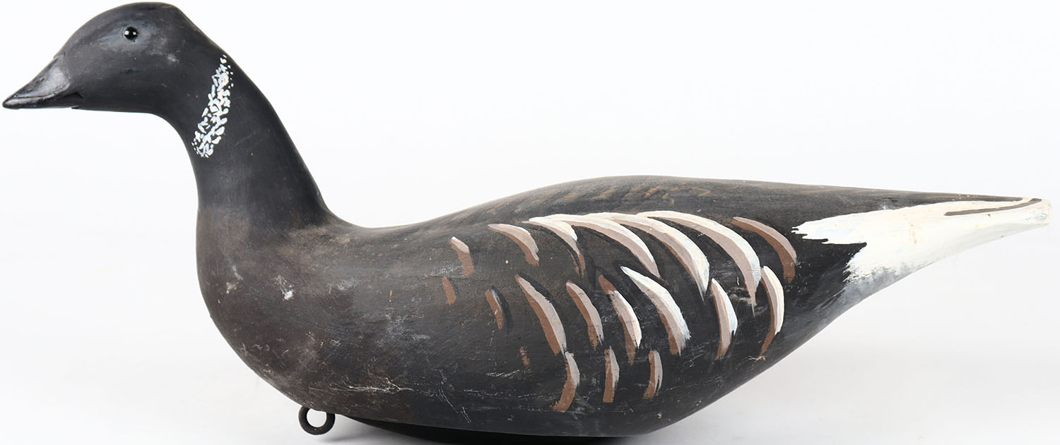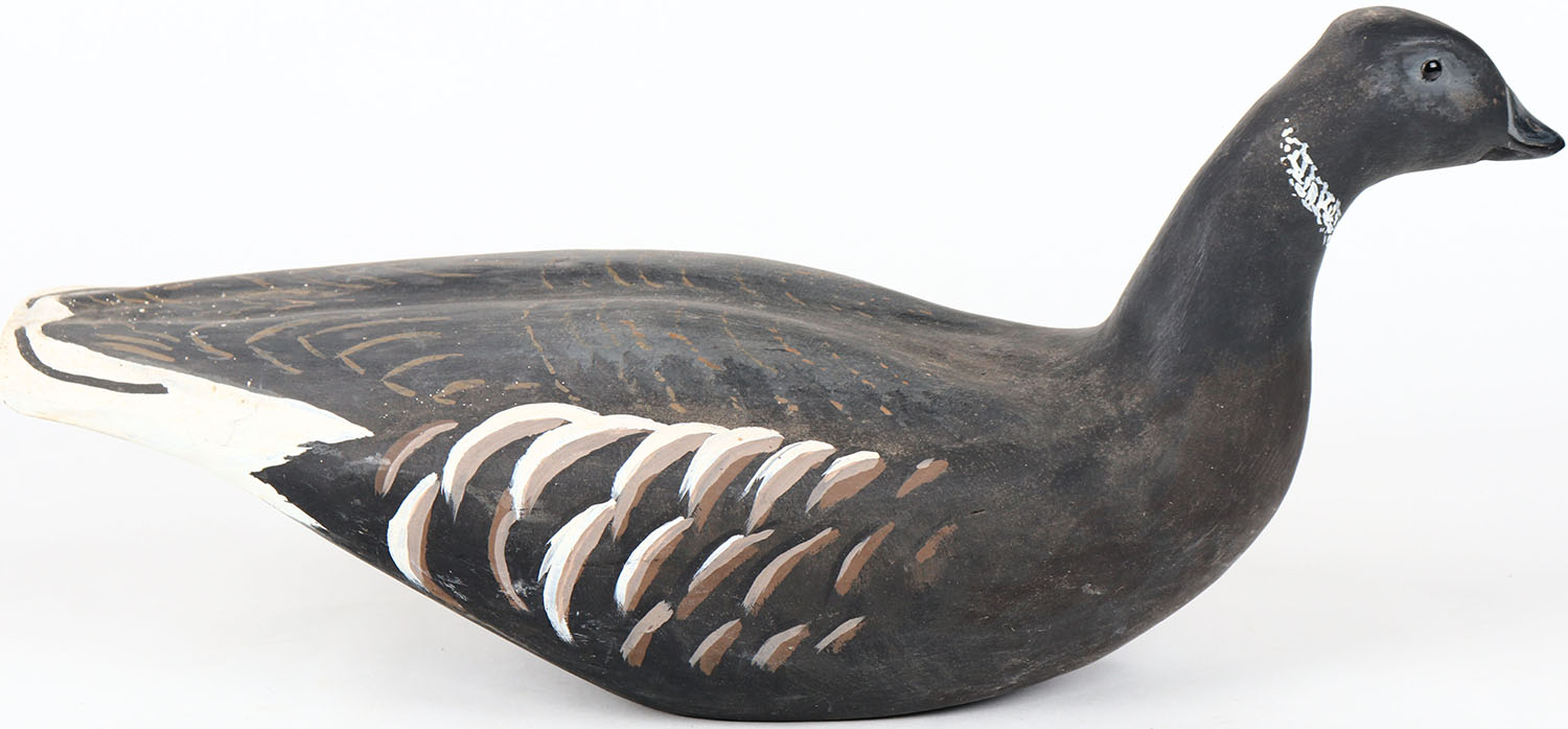 Black Brant by Jack Leach, Tacoma WA, glass eyes, hollow wood, structurally excellent, branded JEL on bottom, original paint. Grade: MINT - Value: 100 to 200