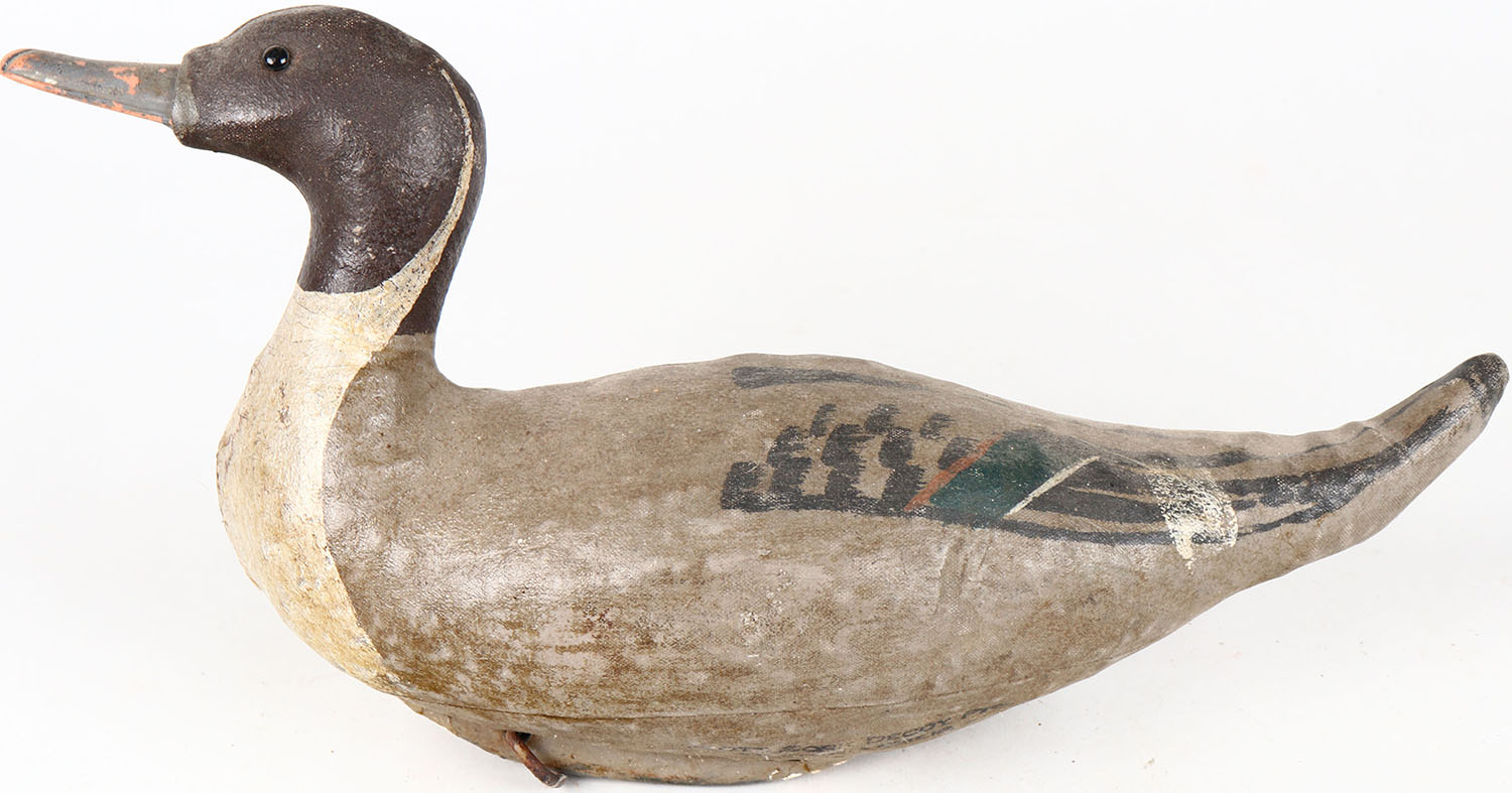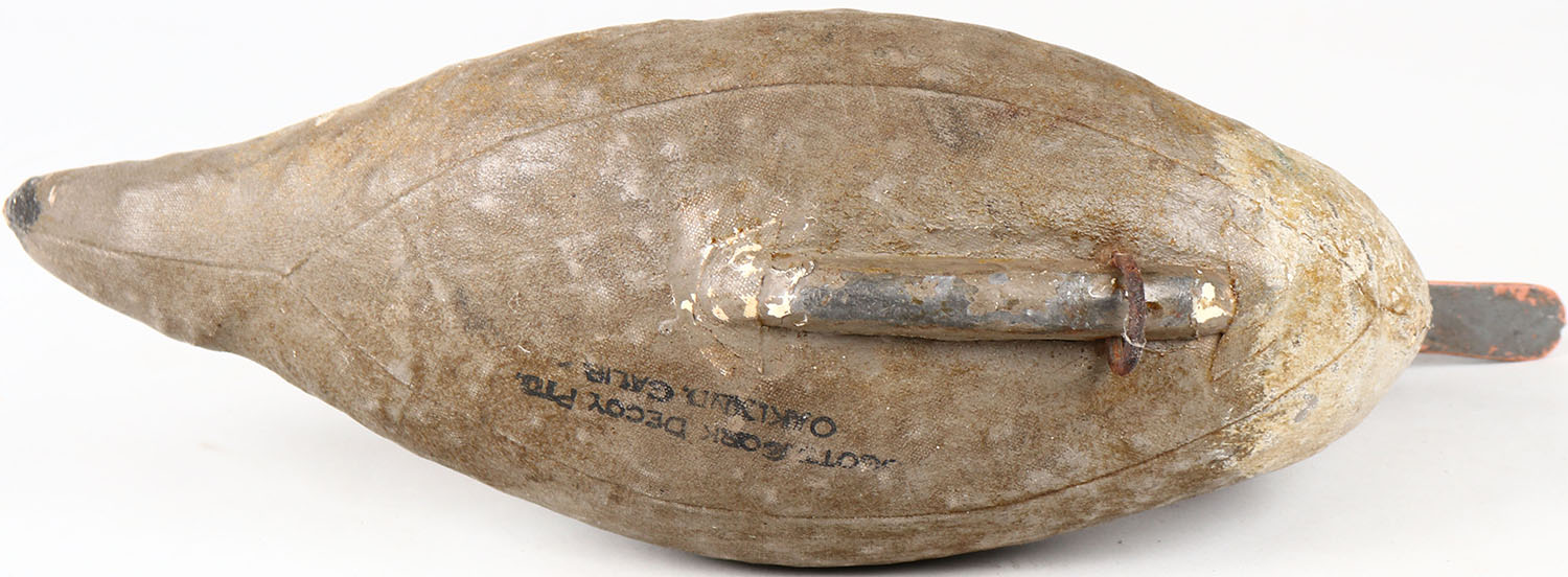 Pintail Drake by Scott Cork Decoy Company, PTD, Oakland, canvas over cork, glass eyes, original paint. Grade: Excellent - Value: 50 to 100