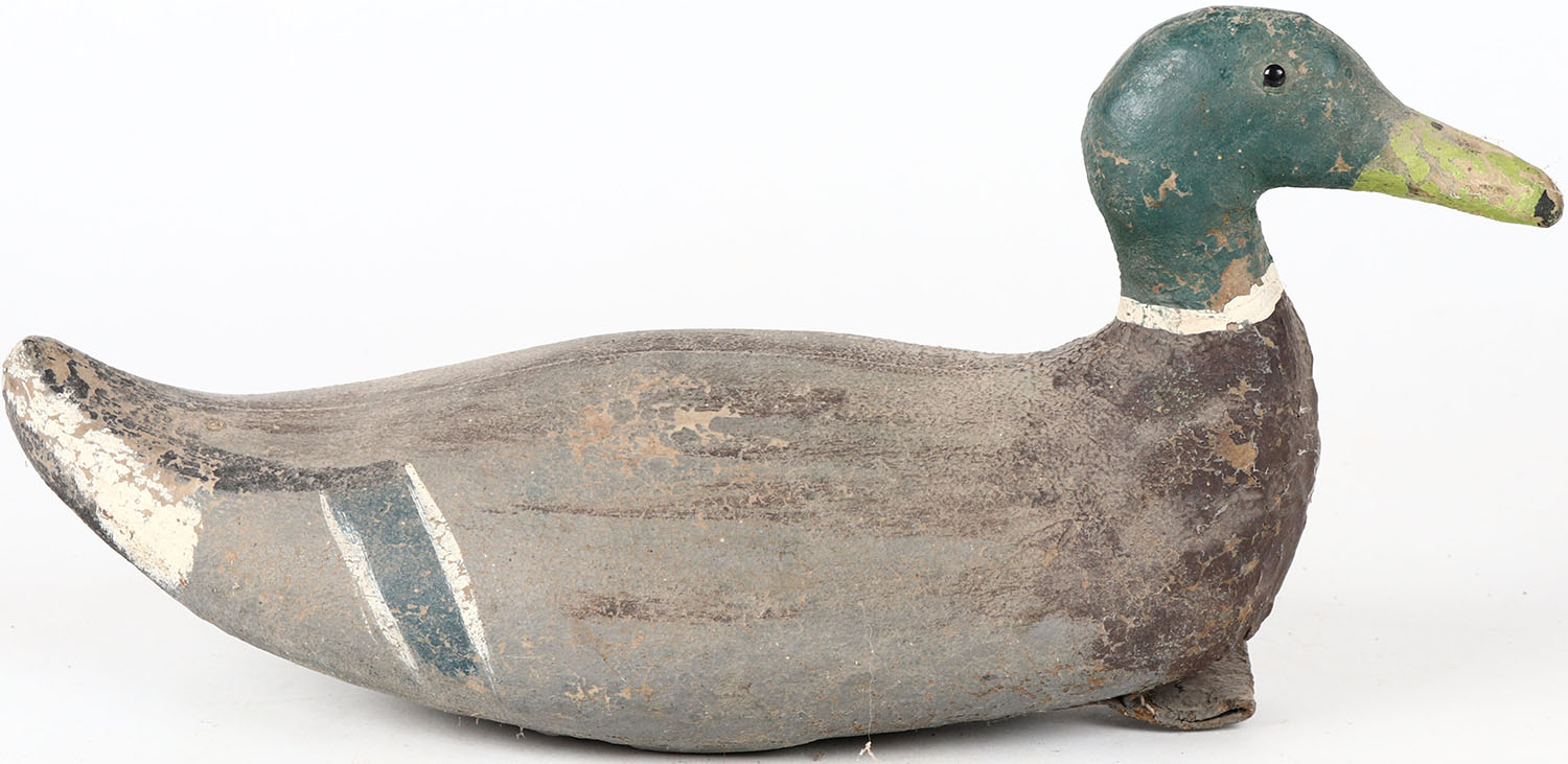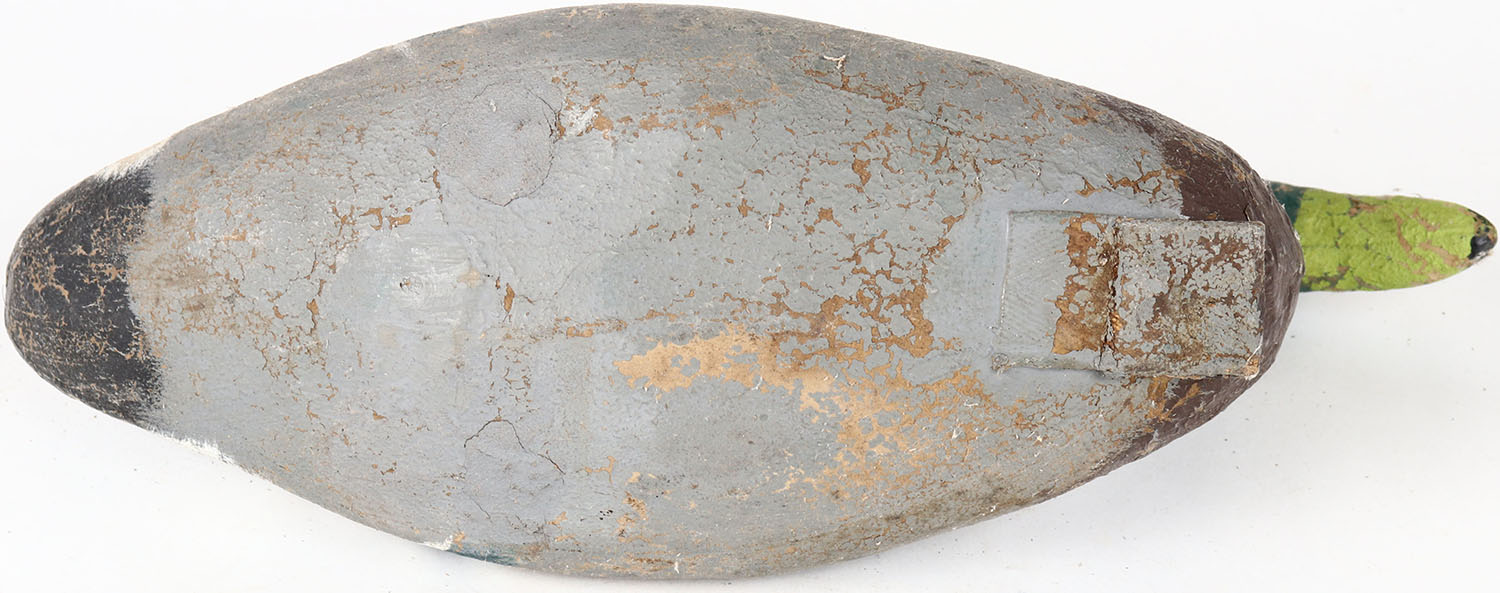 Mallard Drake by Scott Cork Decoy Company, PTD, Oakland, canvas over cork, glass eyes, original paint. Grade: Excellent - Value: 30 to 100