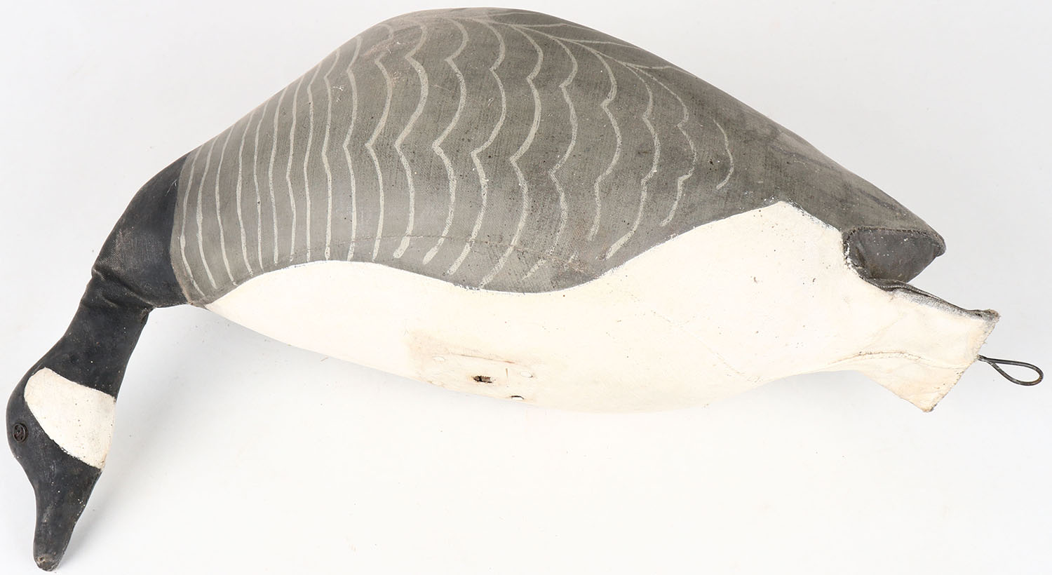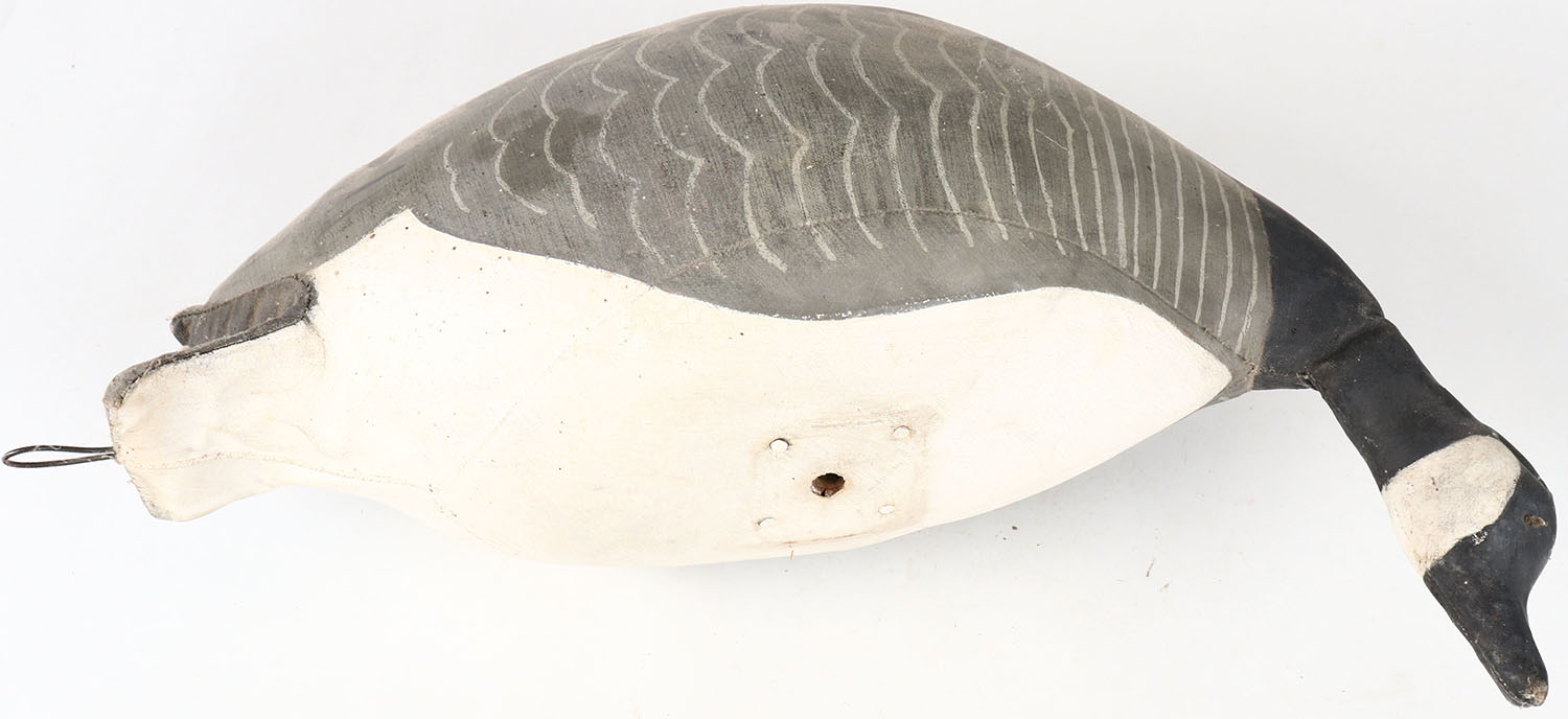 Canada Goose by unknown maker, canvas over cork, button eyes, one eye is missing, original paint. Grade: Very Good ++ - Value: 50 to 100