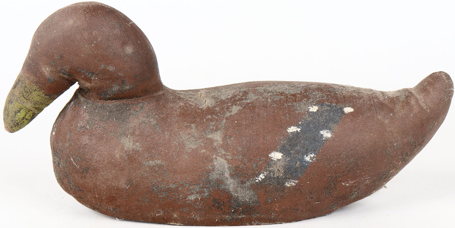 Mallard Hen by unknown maker, canvas over cork, no eyes, original paint. Grade: Excellent - Value: 50 to 100