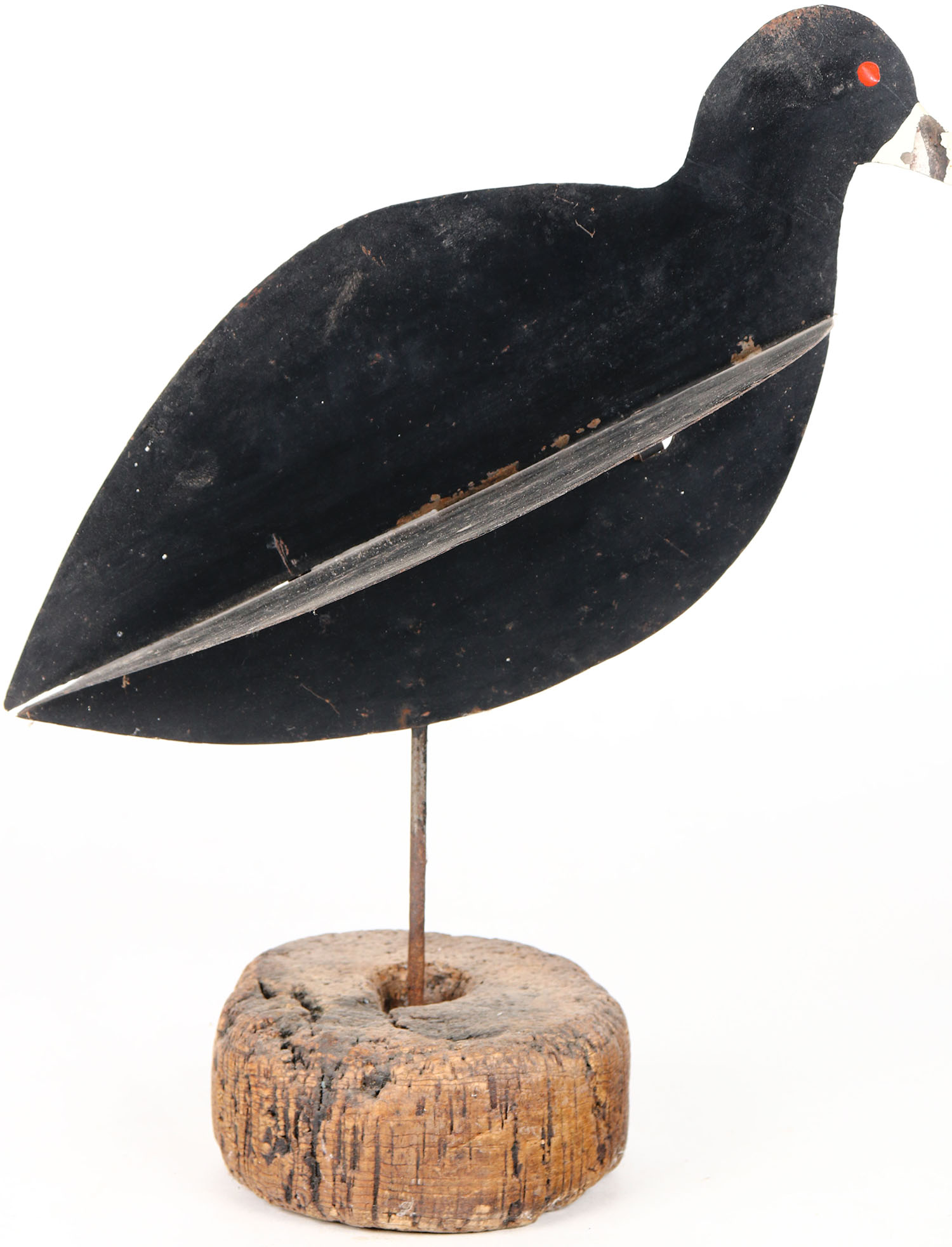 Metal Coot by unknown maker, on wood stand, metal body, original paint. Grade: Excellent - Value: 50 to 100