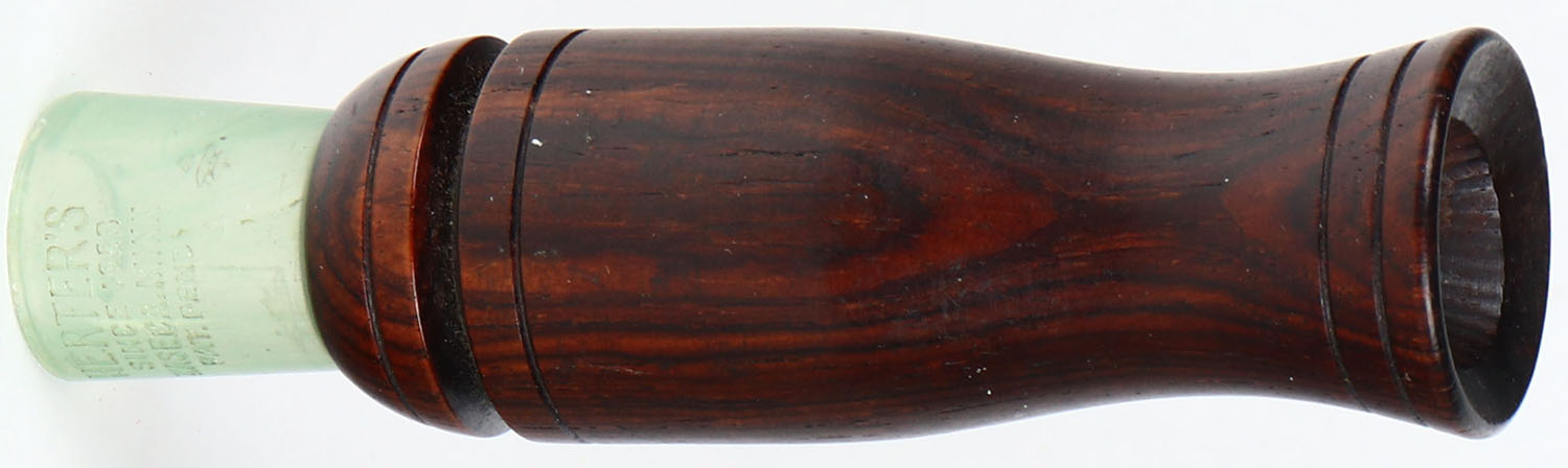 Herters Duck Call. Model No. 279. Tigerwood Barrel w/Green Stopper. Call Only. Ca. 1940s, Lodermeier Collection. Grade: Excellent + - Value: 20 to 60