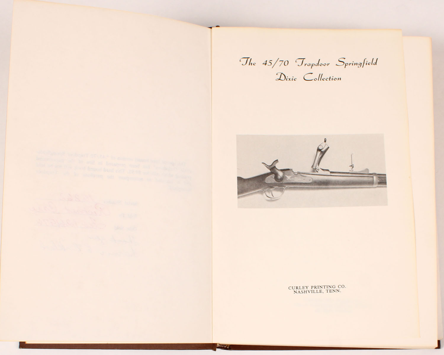 RARE! The 45/70 Trapdoor Springfields Dixie Collection 1975, 6 1/2'' x 9 1/2''. The Hardbound books only came with the gun! Has a page with the Serial Number and orignal purchaser and purchase date of 1976, Pages are clean, binding is tight, hardcover very good, Excerpt from page 92 about the following pages: