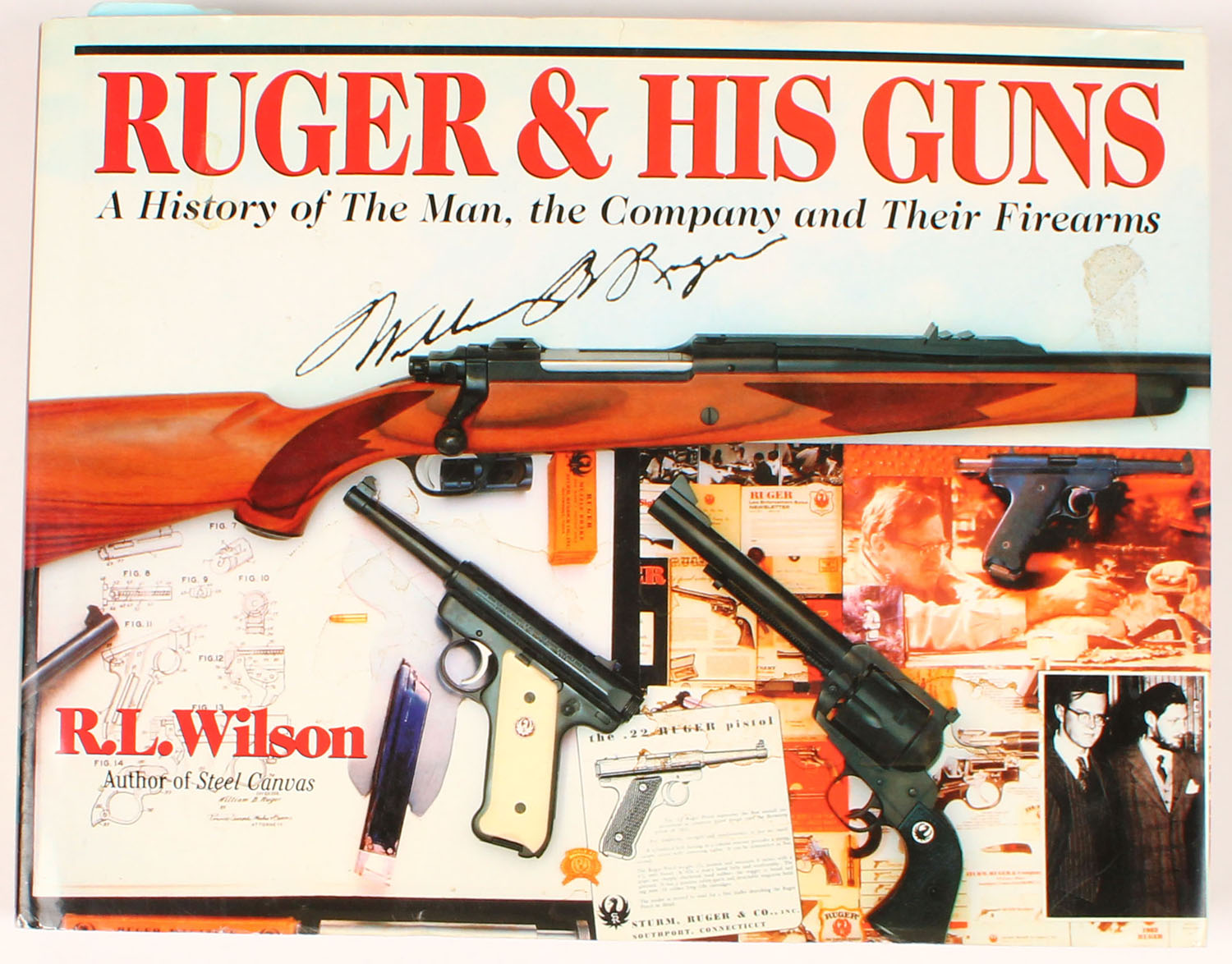 Ruger & His Guns: A History of the Man, the Company and Their Firearms by R.L. Wilson, 11'' x 9''. 358 pages, pages clean, binding tight, hardcover and dustjacket excellent, colored images. Value: $60 Grade: Excellent + - Value: 4 to 60