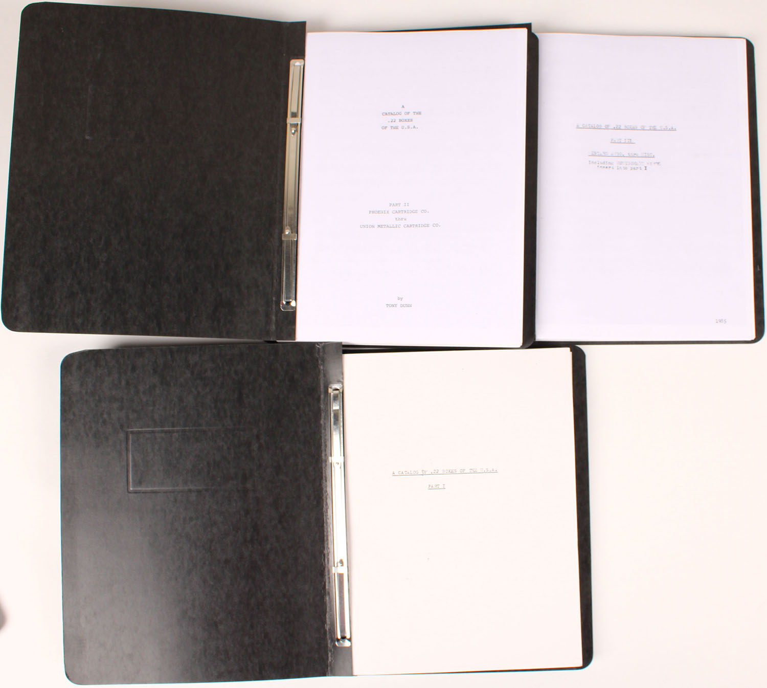 Lot of 3 Catalog Books of 22 boxes by Tony Dunn, 9'' x 11 1/12''. Pages clean, bindings tight. Grade: Excellent - Value: 2 to 200