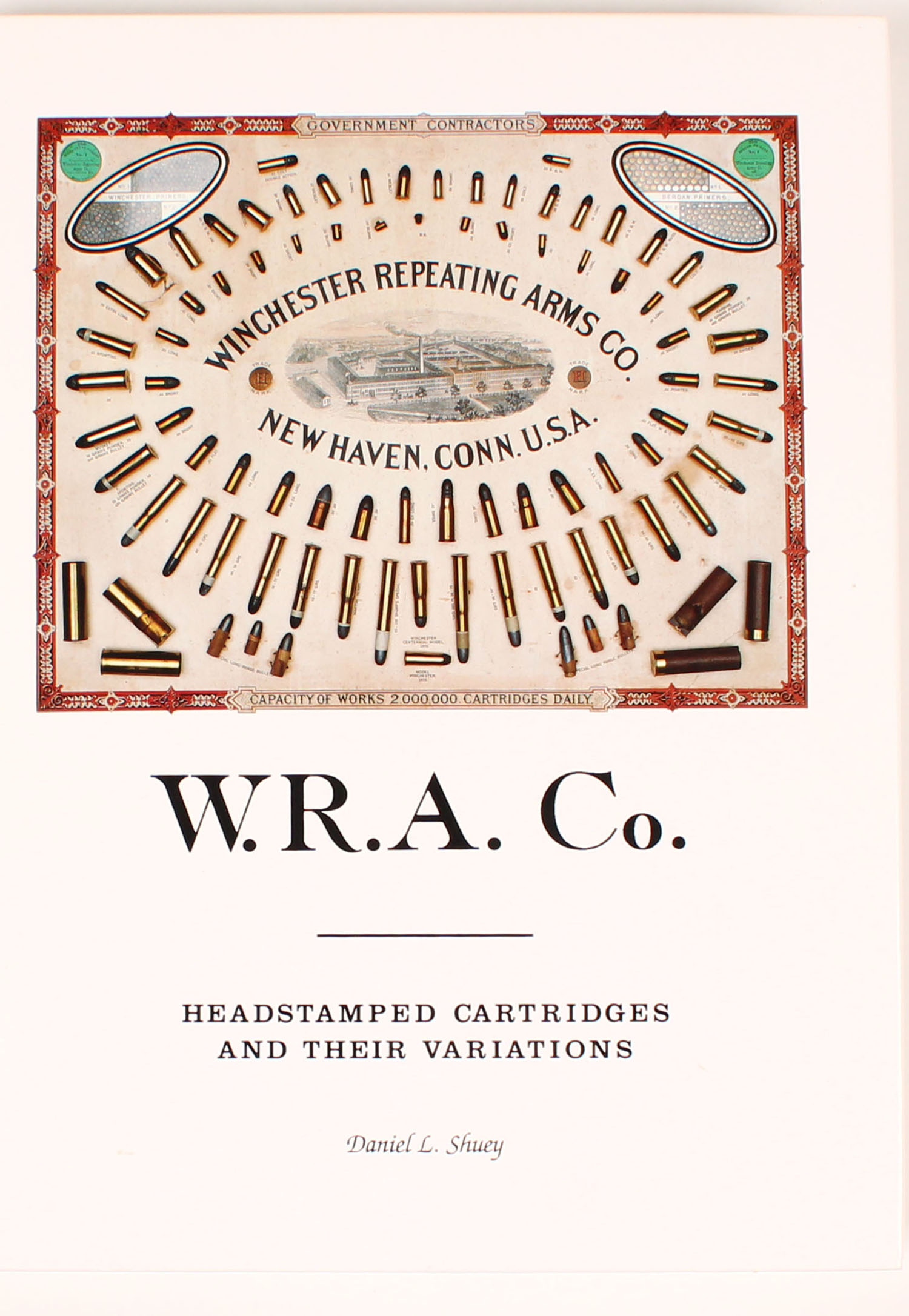 W.R.A.Co. Headstamped Cartridges and Their Variations: Volume 2 (Winchester Repeating Arms Co.) by Daniel Shuey 2003, SIGNED BY AUTHOR, 8 1/2'' x 11''. 351 pages, pages clean, binding tight, hardcover mint, B/W images. Value: $135 Grade: MINT - Value: 2 to 100