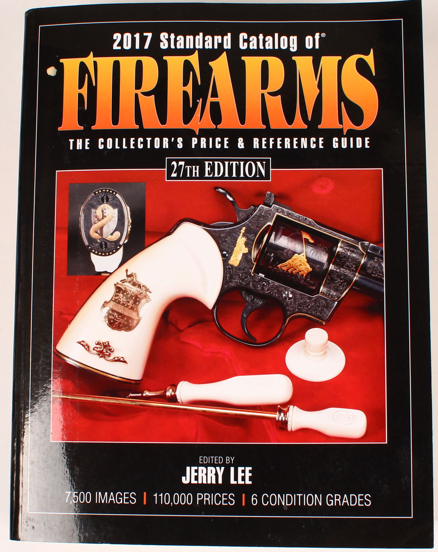 2017 Standard Catalog of Firearms: The Collector's Price & Reference Guide by Jerry Lee, 8 1/2'' x 11''. 1472 pages, pages clean, binding tight, softcover mint, B/W and colored images. Value: $100 Grade: MINT - Value: 2 to 100