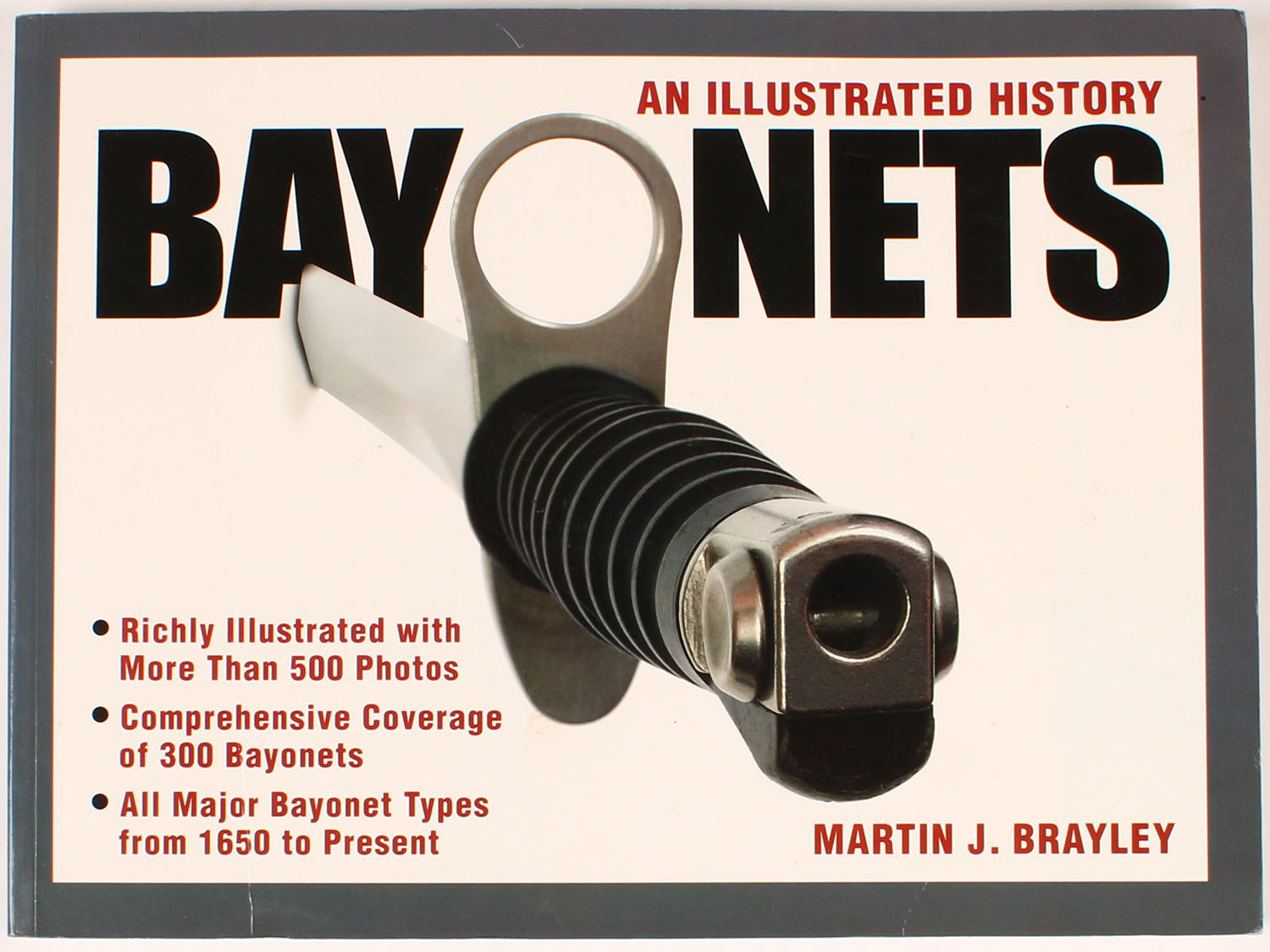 Bayonets: An Illustrated History by Martin J. Brayley 2004, 12'' x 9''. 256 pages, pages clean, binding tight, softcover mint, B/W and colored images. Value: $254 Grade: MINT - Value: 10 to 200