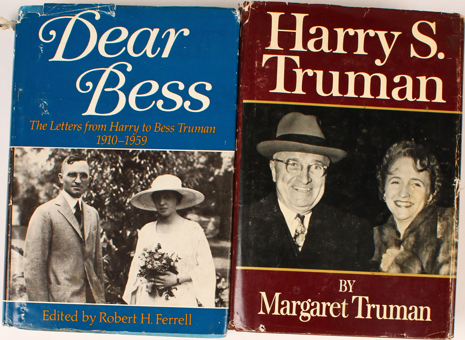 Lot of 2 (1) Harry S. Truman by Margaret Truman, 6 1/2'' x 9 1/2''. 602 pages. (1) Dear Bess The Letters from Harry to Bess Truman 1910-1959 by Robert H. Ferrell, 6 1/2'' x 9 1/2''. 593 pages. Both hardcover and dustjackets good, dustjackets have some tearing, pages clean, bindings tight. Grade: Excellent - Value: 2 to 100