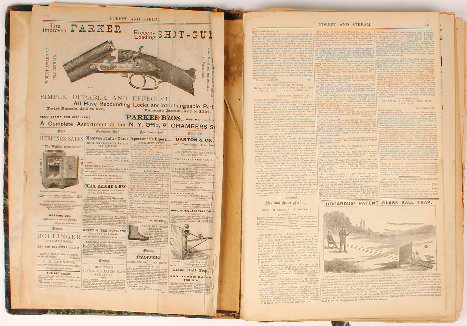 Forest and Stream by 11 1/2'' x 16''. 480 pages, pages clean, pages are not connected to cover, hardcover good with some wear. Grade: Very Good - Value: 2 to 100