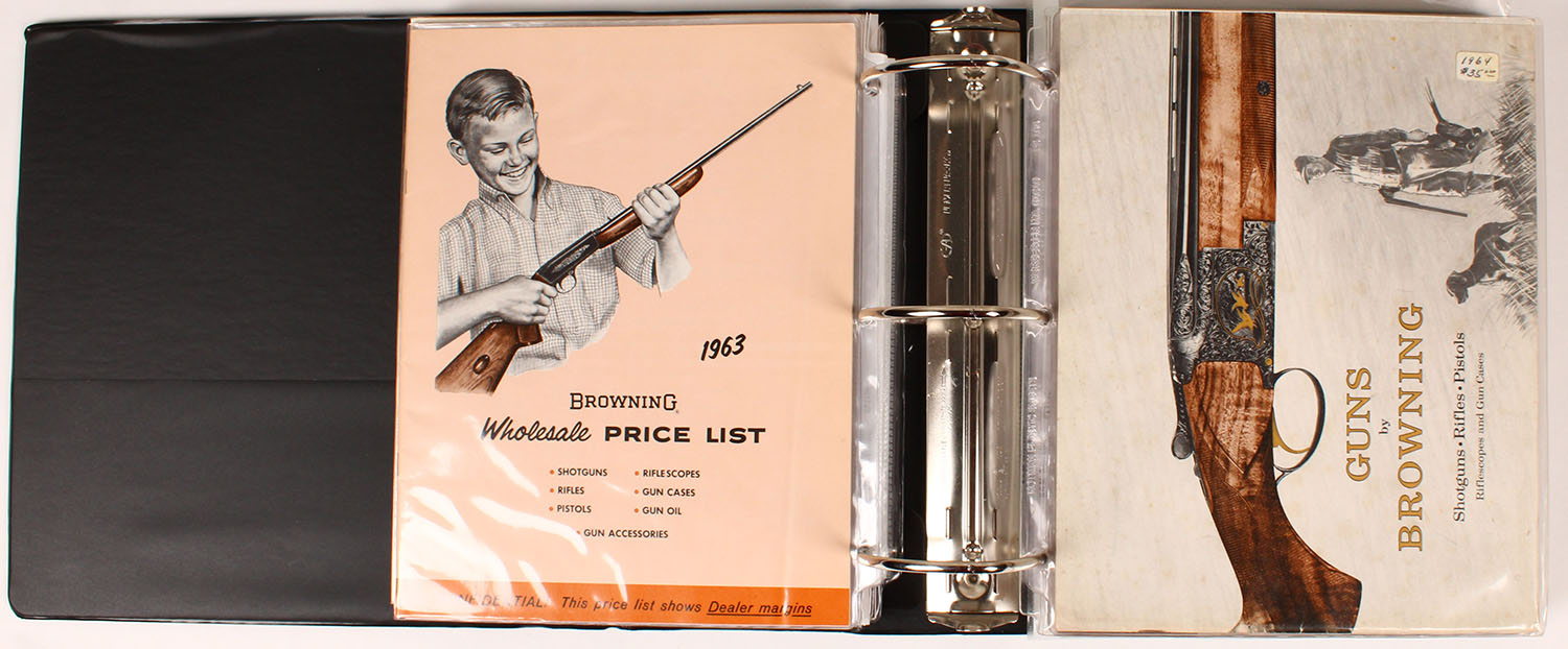 Large lot of Browning 1960/1969 Catalogs in a 3 ring binder. Grade: Excellent - Value: 2 to 100