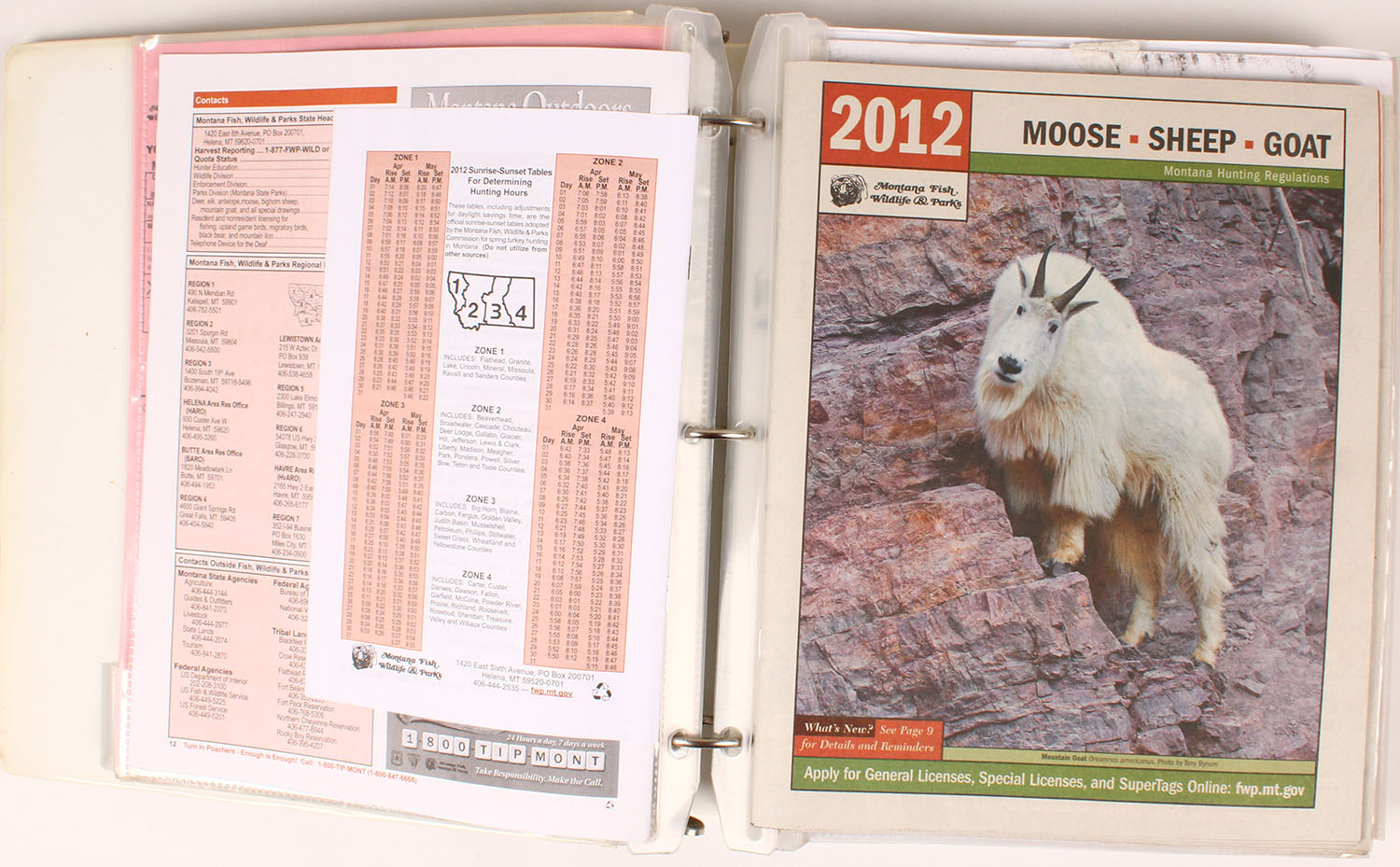 | Large lot of Montana Hunting Regulations in a 3 ring binder. Gra...