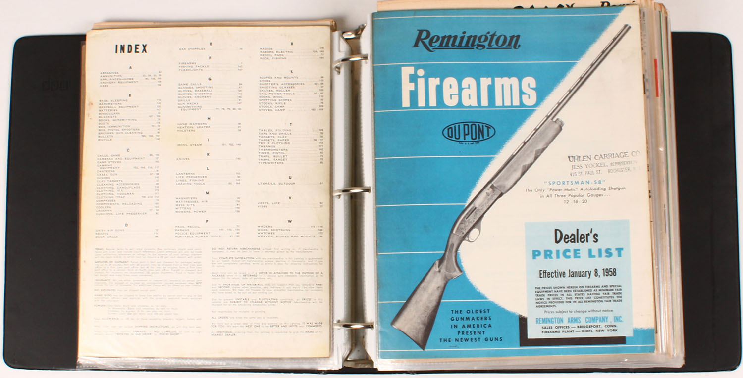 Remington information and catalogs, 1957-1969 in a 3 ring binder. Grade: Excellent - Value: 2 to 100