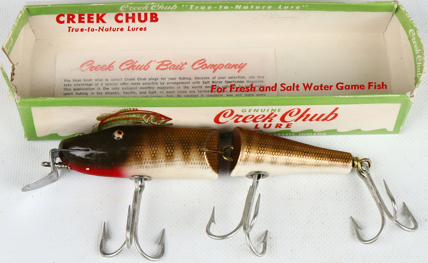 | Creek Chub Musky Jointed Pikie Minnow in original box, perch fi...