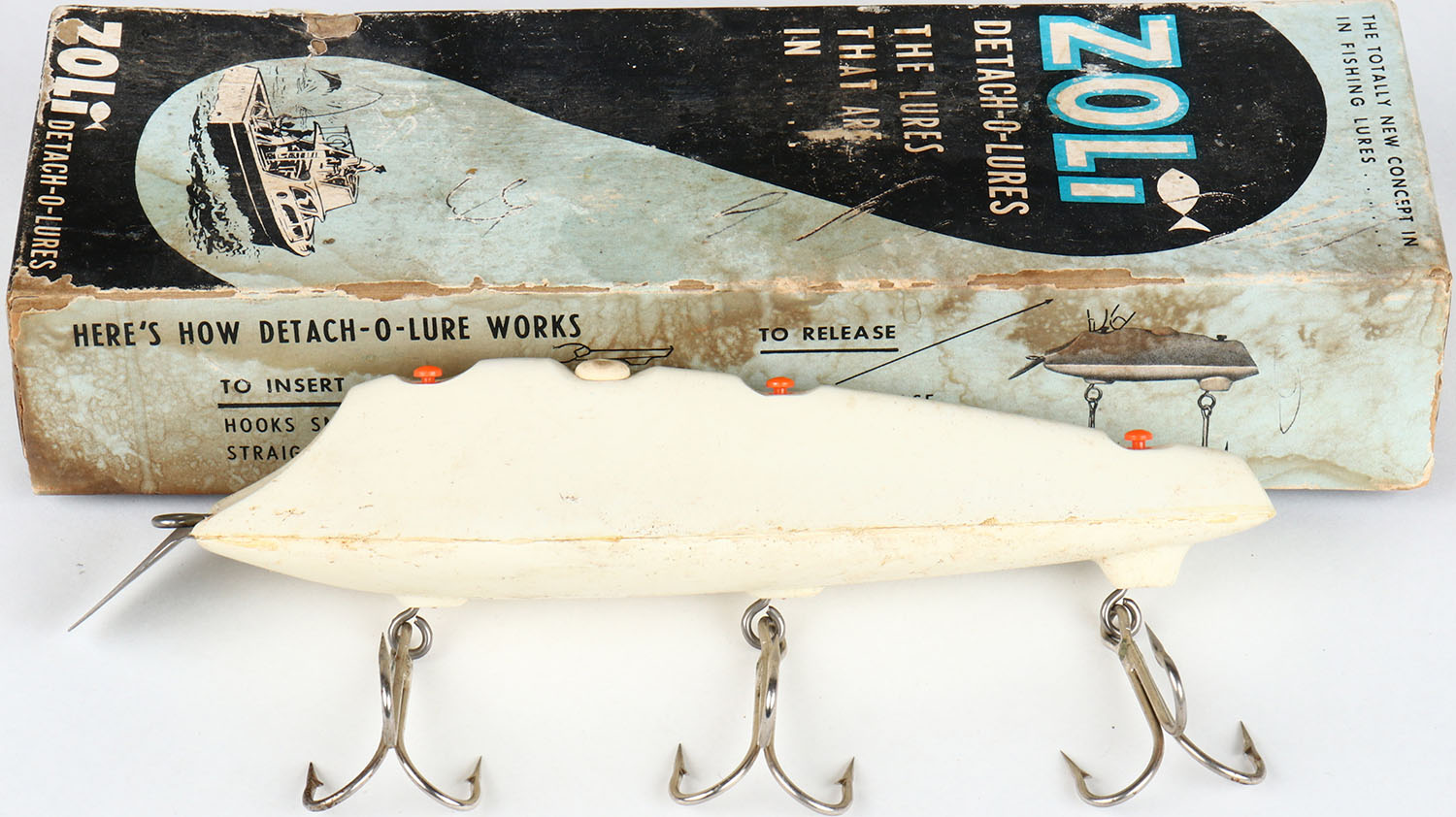 | Zoli Detach-O-Lure in the box, No. 700, this white plastic lure ...