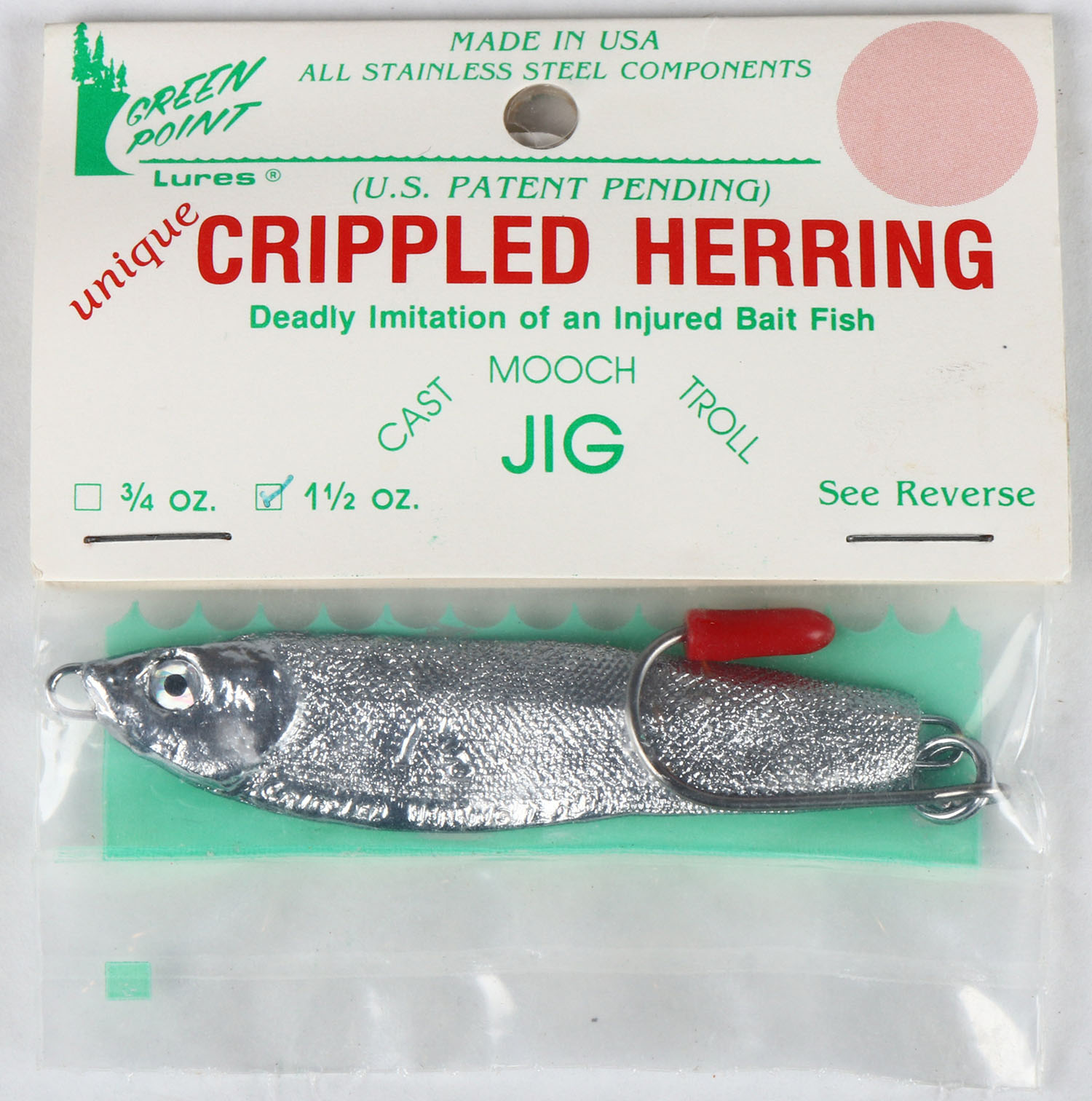 | Green Point Crippled Herring jig in original packaging. Grade: ...
