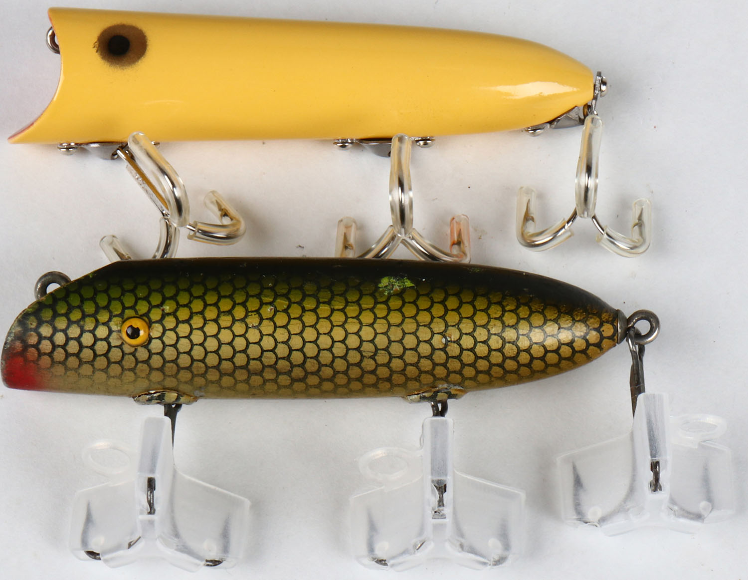 Lot of 2 unmarked wood lures, possibly South Bend. Grade: Excellent - Value: 6 to 40