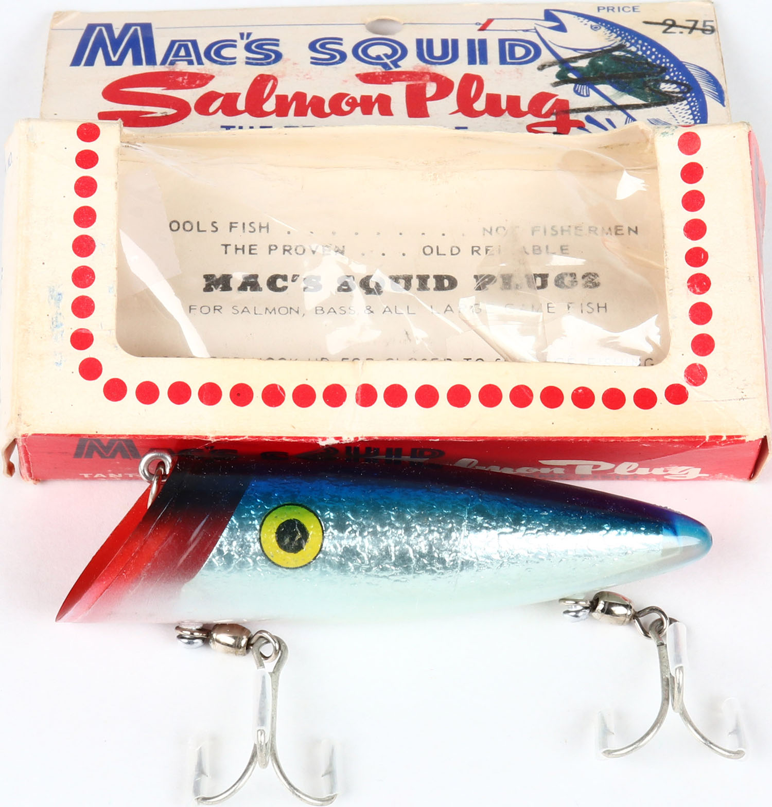Macs Squid Salmon Plug in the original box, PE, well marked, blue. Grade: Excellent - Value: 10 to 40