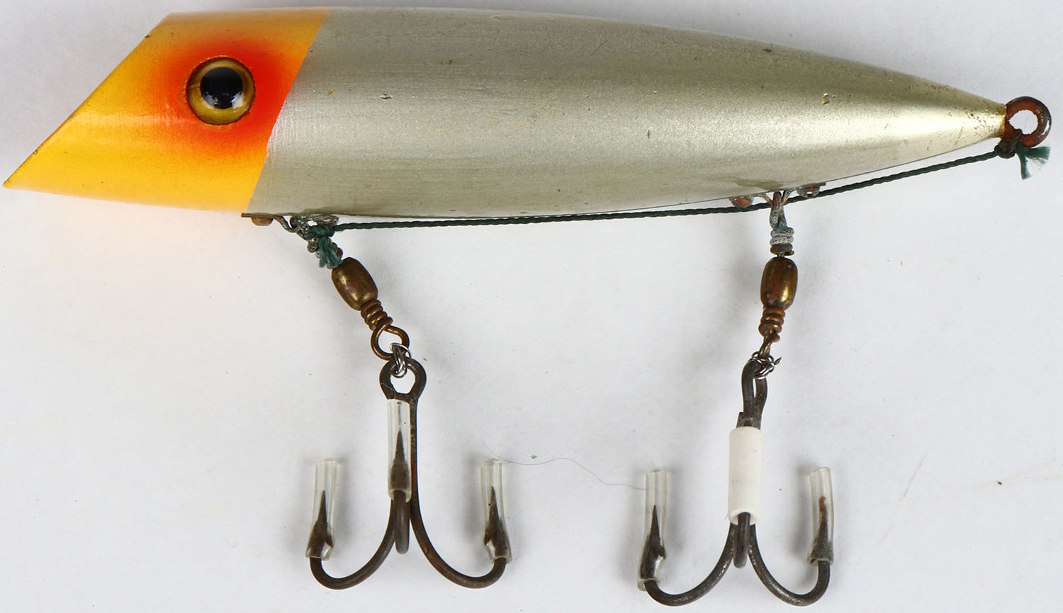 Hanson Salmon Plug, GE, unmarked, gray, yellow & red. Grade: Excellent ++ - Value: 2 to 30