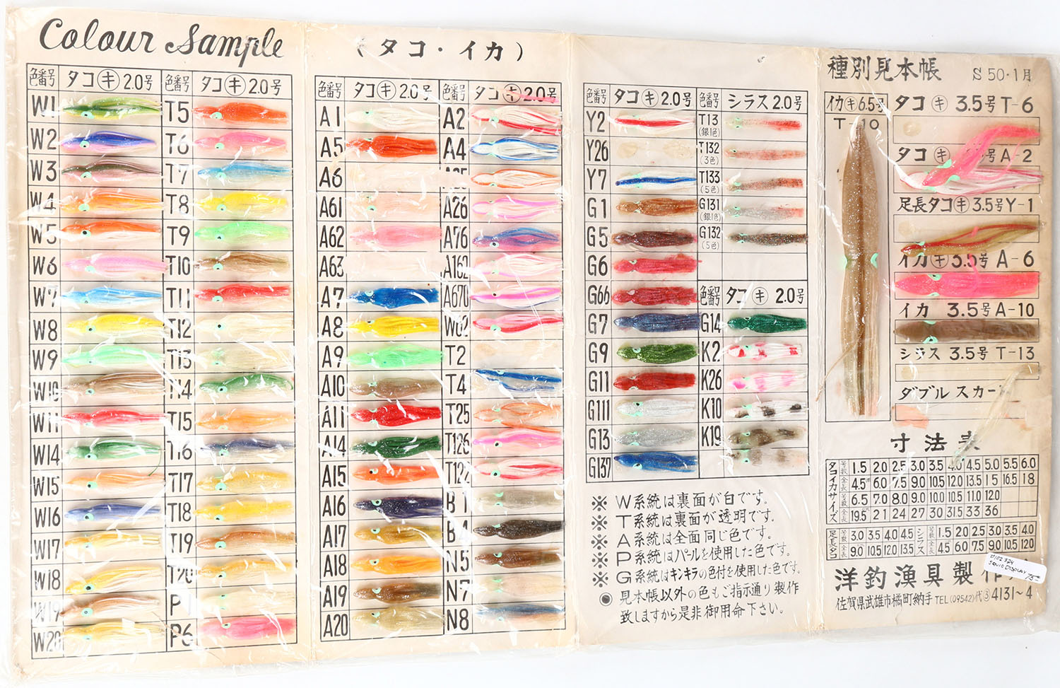 | Large fold out Japanese color chart for squid lures, 27 x 15. ...