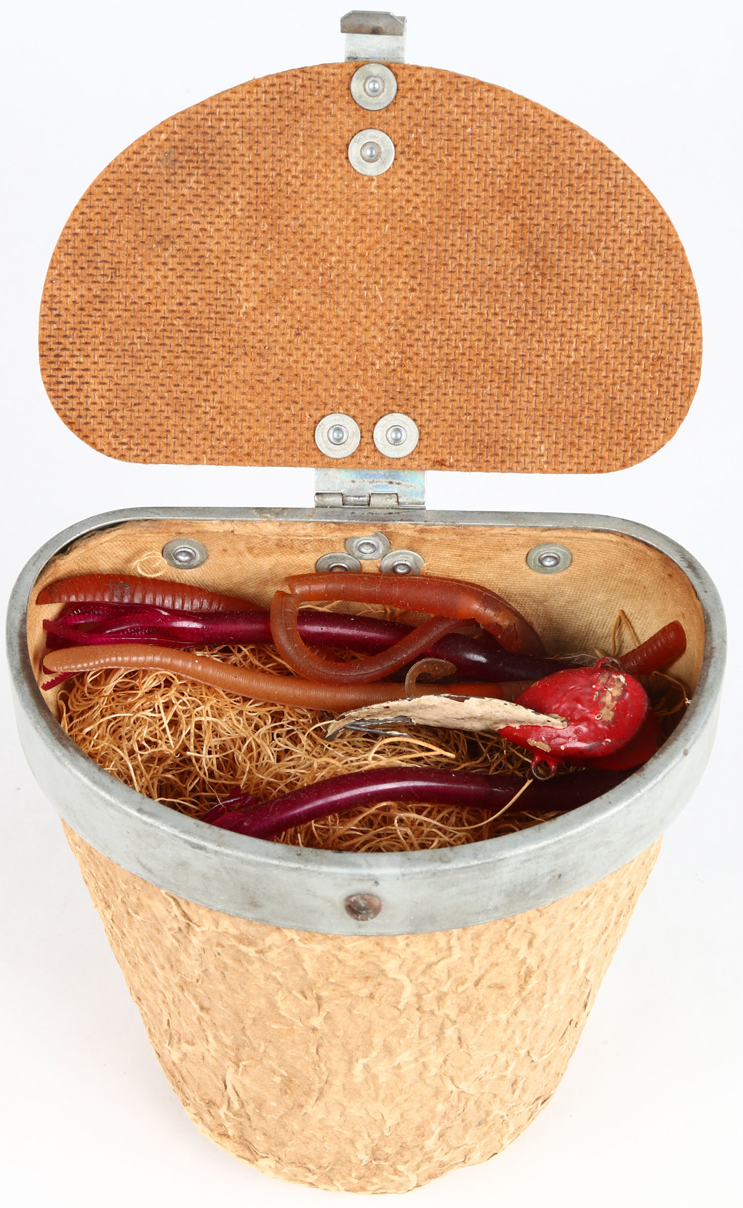 Worms & Minnow bait bucket, has partial label on top, has belt loops. Grade: Very Good ++ - Value: 2 to 30