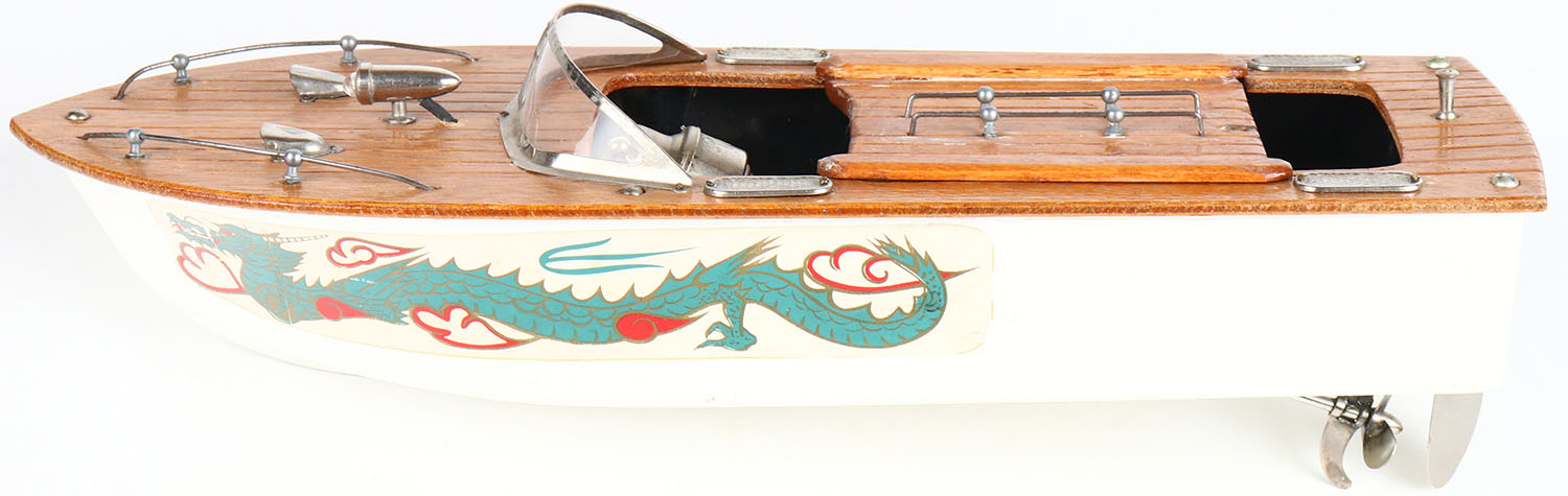 Chris Craft Power Electric Model Speed Boat, wooden boat has electric inboard motor, appears complete and in working order, boat & motor look near mint. Grade: Excellent ++ - Value: 20 to 200