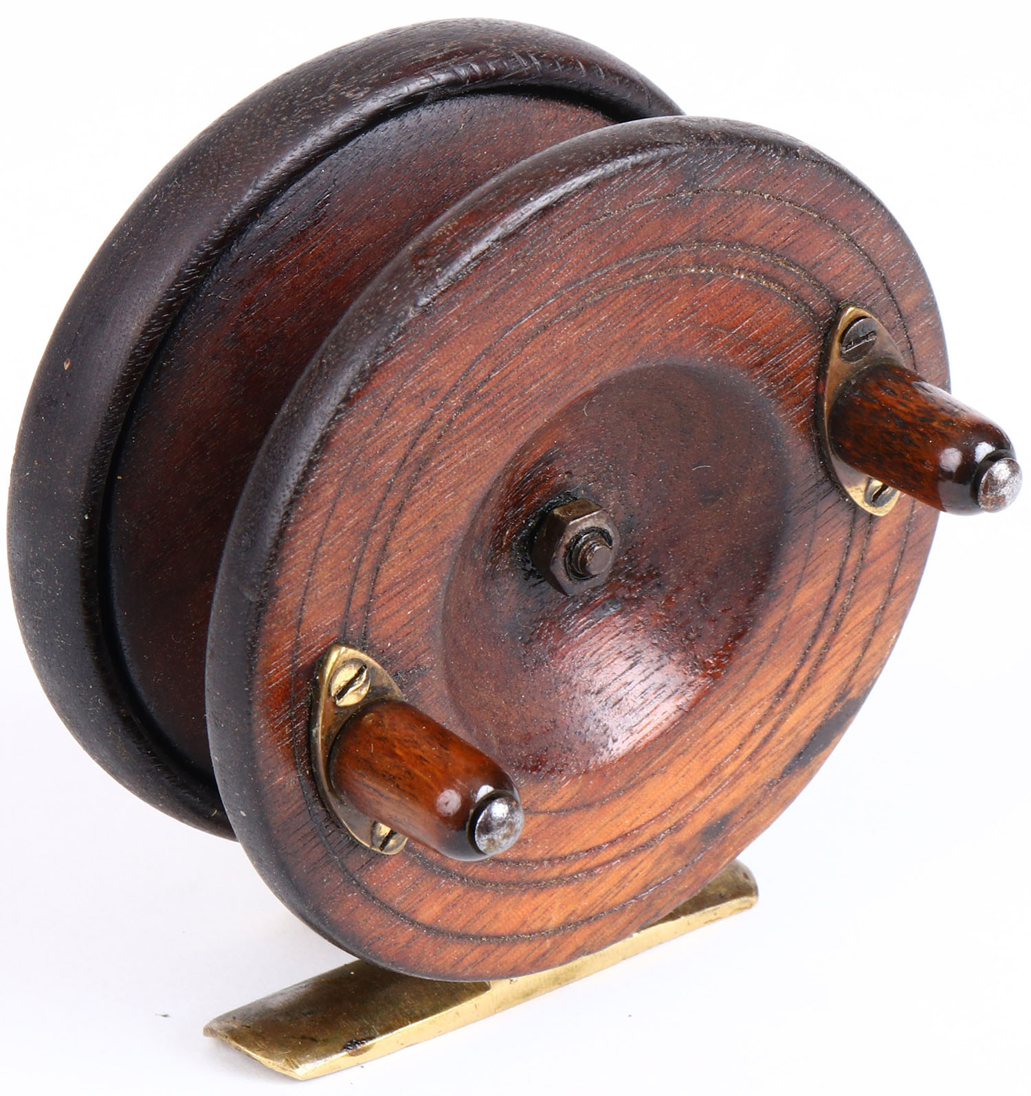 | Wooden/brass fly reel, 3'' dia., two handles. Grade: Excellen...
