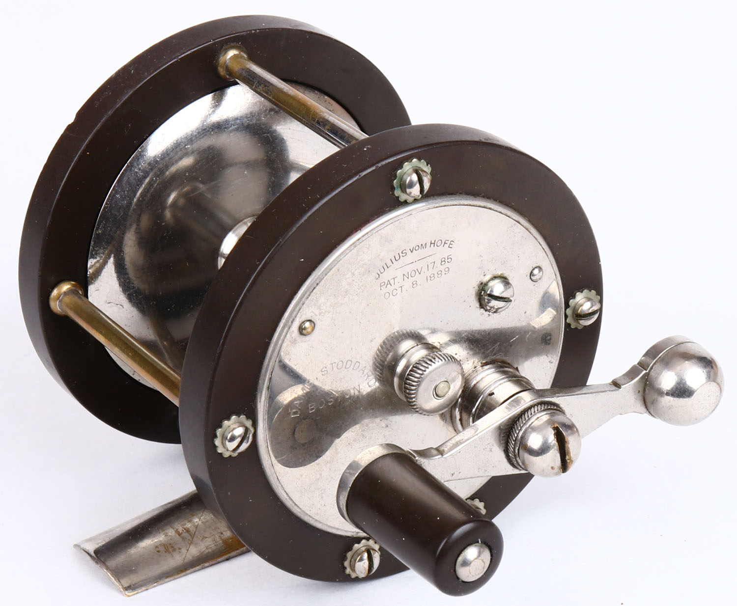 Julius Vom Hoff reel, circa 1900, pat dates 1895 & 1898, works well. Grade: Excellent - Value: 40 to 150