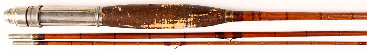 Winchester 3 Pc. Split bamboo fly rod No. 6030, 8' 5'', guide on tip is missing, all orignal wrapping, all correct length, cork handle has darkened from age, well marked on reel seat, highly collectible condition. Grade: Very Good + - Value: 70 to 150