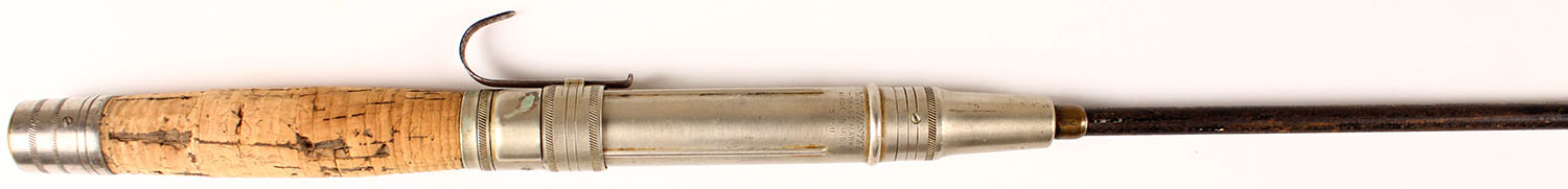 Winchester 1 Pc. Collapsible Steel rod No. 5450, 5' 6'', all orignal and correct length, cork handle is light & in excellent condition, well marked on reel seat, highly collectible condition. Grade: Very Good ++ - Value: 50 to 200
