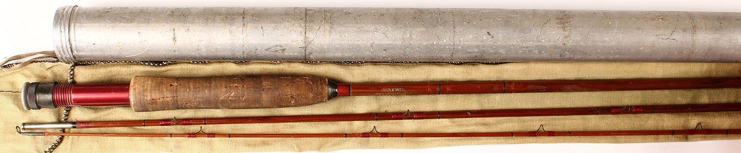 Bamboo Fly Rod Marked ''Utica New York, Tonkin'', 8' 6'', 3/1, all original, cork handle has darkened from use, has unmarked bag & tube. Grade: Very Good ++ - Value: 10 to 60