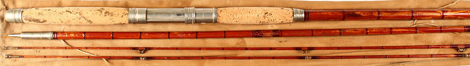 17' 4'' Cane Rod, 3/2, unmarked, has tunnel guides, missing one guide with some rewrapping, cork handle is very nice. Grade: Very Good - Value: 20 to 150
