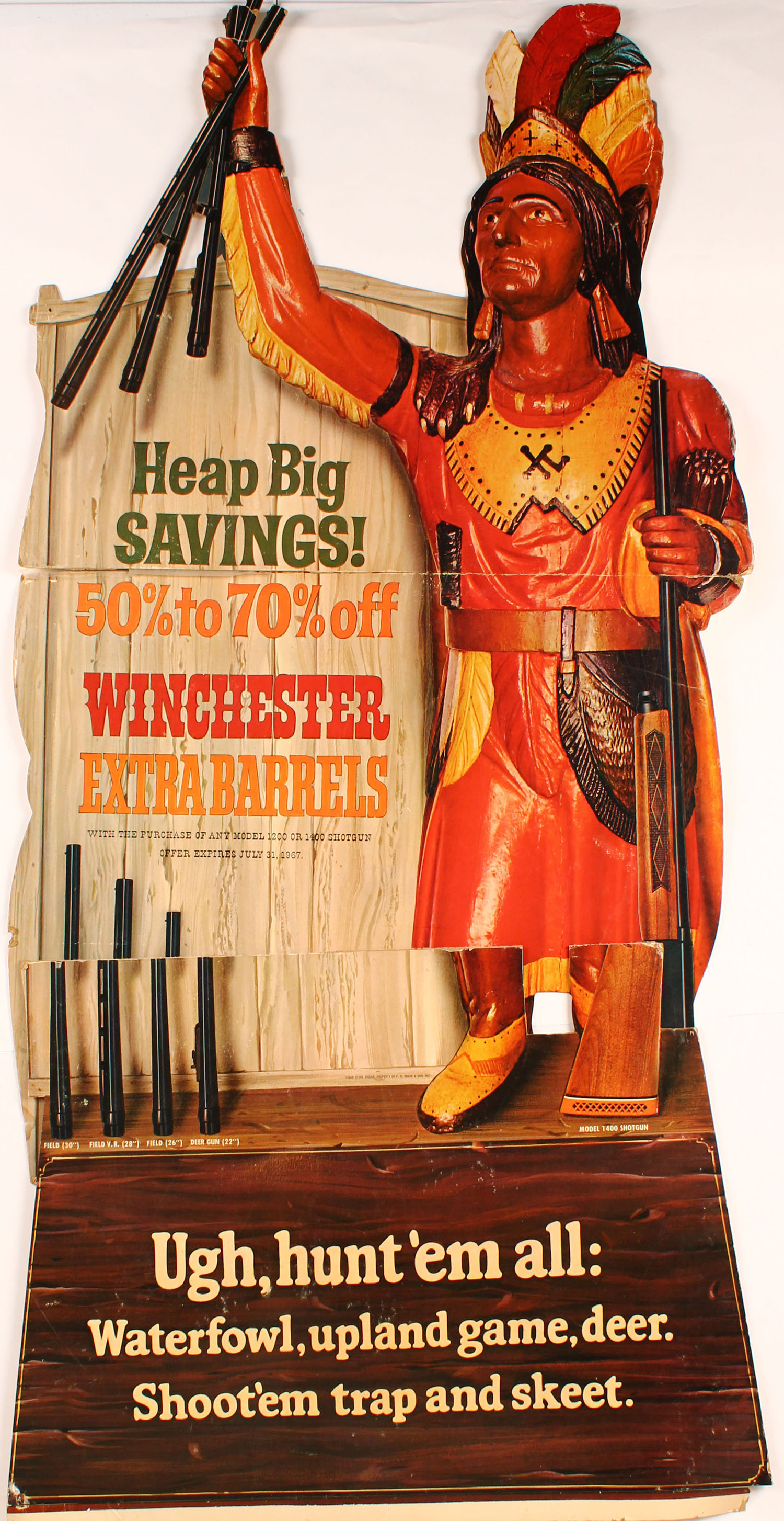 Large Savage Indian Diecut, has split apart as the bottom seam but could be repaired, 25'' x 60''. Grade: Very Good - Value: 10 to 60