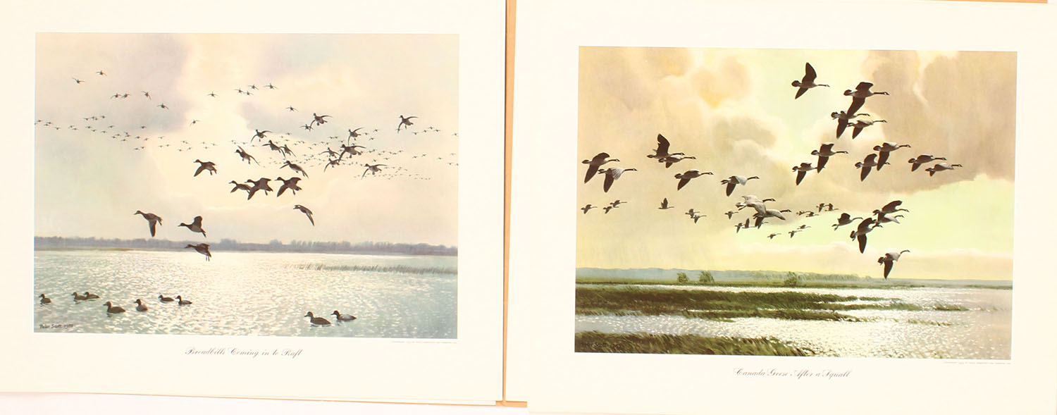 RARE, Set of 6 1953 Peter Scott full color prints, Titled ''Waterfowl Sporting Prints'' in original portfolio sleave, with artist & print description sheets. Frame quality. Originally offered by Field & Stream. Grade: Excellent++ - Value: 2 to 100