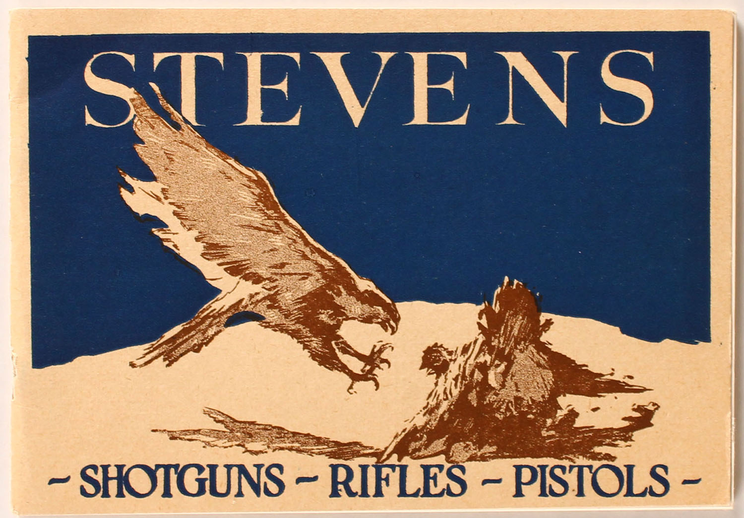 1930's J. Stevens Arms Co. Catalog, Rifles, Shotguns & Pistols, all models are pictured, about 40 pages, 8'' x 5 1/2''. Grade: Excellent + - Value: 10 to 50
